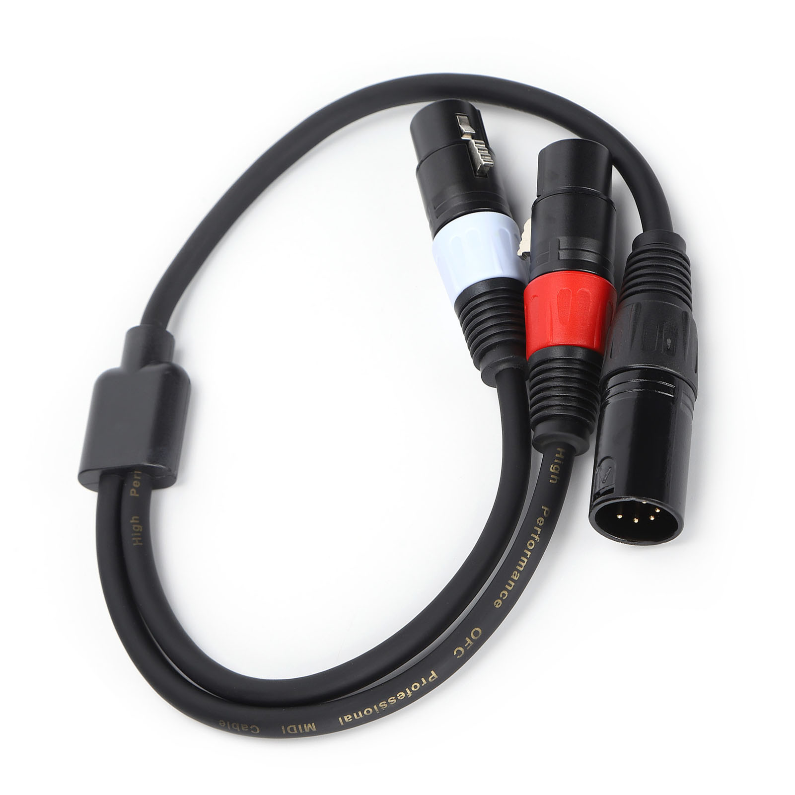 4. Кабель XLR с 5-контактным разъемом «папа» на двойной разъем XLR с 3-контактным разъемом «мама» имеет широкий спектр применения и подходит для подключения микрофонов, микшеров, эквалайзеров, кроссоверов, усилителей, бас-гитар, устройств DMX и т. д.