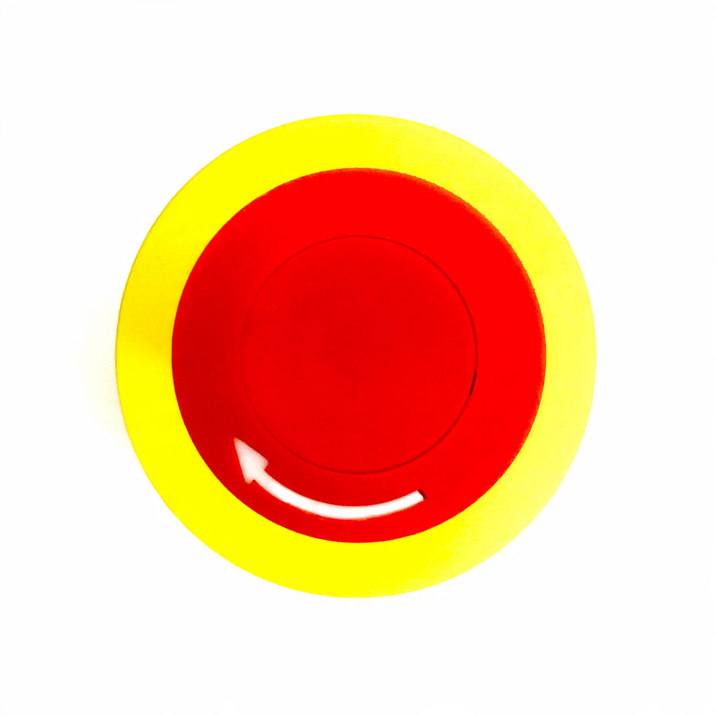 Желтая табличка с описанием АВАРИЙНОГО ВЫКЛЮЧАТЕЛЯ диаметром 60 мм, для кнопок управления диаметром 22 мм, наклеена на скотч 3М.