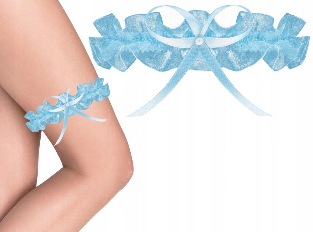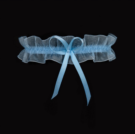 Тюль, Синяя одесская подвязка ненавязчиво подчеркнет неповторимость вашей свадьбы. Это эффектная модель из синего фатина, украшенная бантом и кристально-белой петелькой.