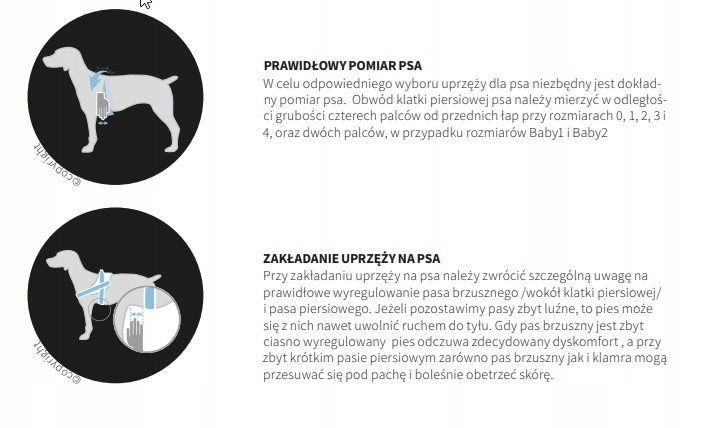 ПРАВИЛЬНОЕ ИЗМЕРЕНИЕ СОБАКИ Чтобы правильно выбрать шлейку для собаки, необходимо точно измерить собаку. Окружность груди собаки следует измерять на расстоянии четырех пальцев от передних лап для размеров 0, 1, 2, 3 и 4 и двух пальцев для размеров Baby1 и Baby2