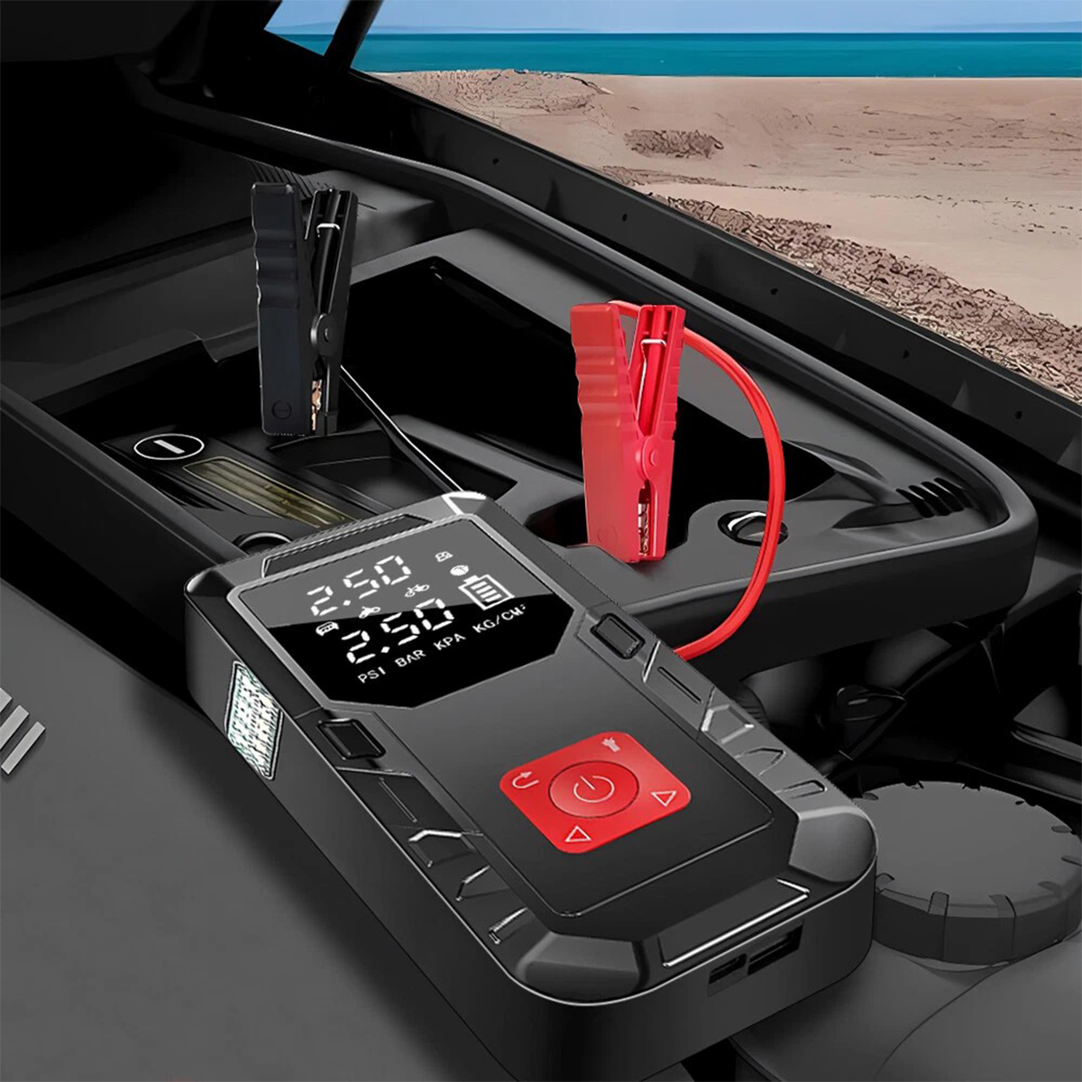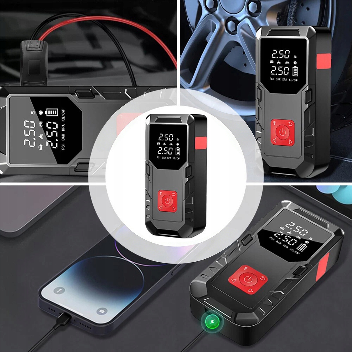 🚗 Это устройство имеет USB-порт и аккумулятор емкостью 99800 мАч, поэтому его можно использовать в качестве повербанка. Вы можете заряжать свой мобильный телефон, планшет или другие устройства в любое время и в любом месте. Идеально подходит для использования на открытом воздухе.