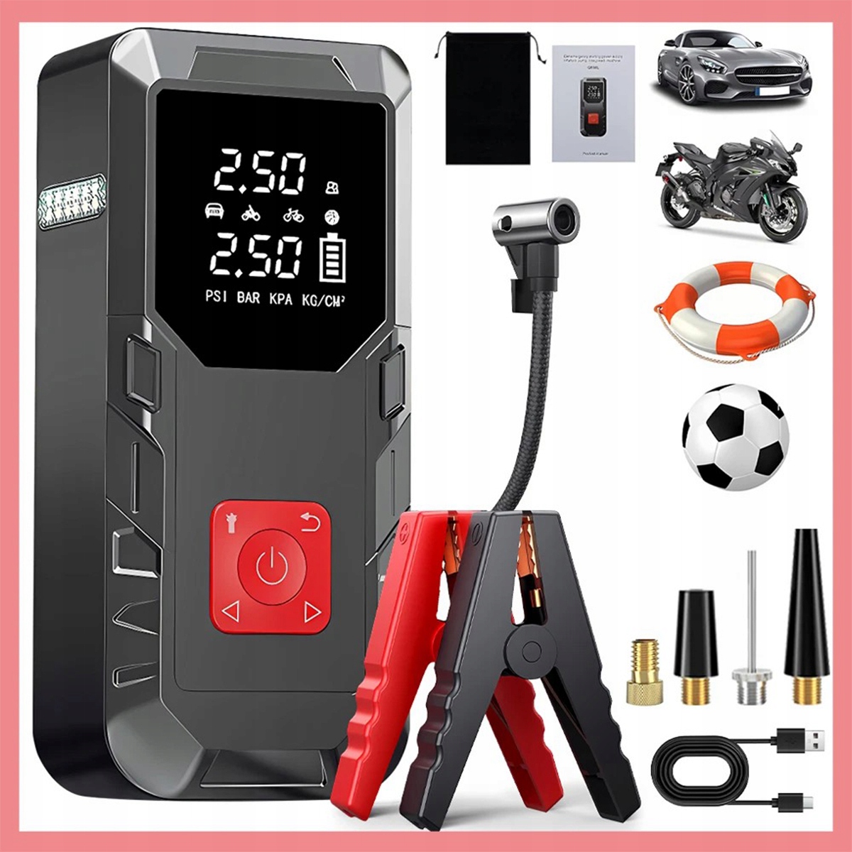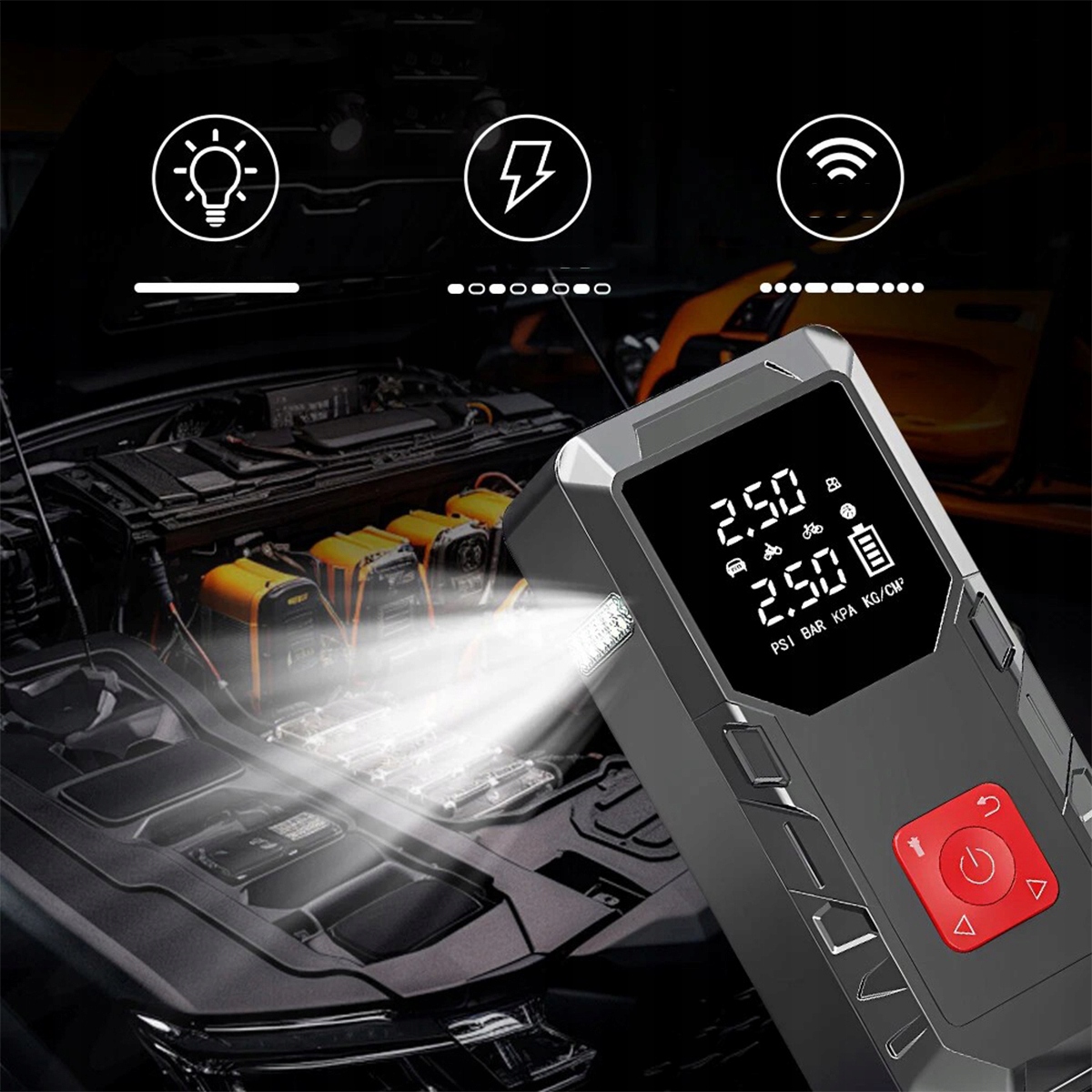 - Функции продукта: стартер/Powerbank/воздушный насос/светодиодная подсветка.