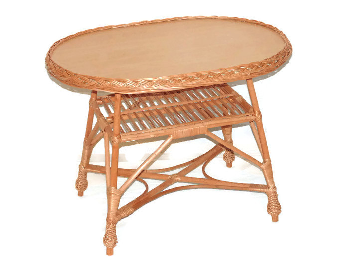 ЖУРНАЛЬНЫЙ СТОЛИК / ПЛЕТЕНАЯ СКАМЬЯ, СТОЛЕШНИЦА ИЗ МДФ, ОВАЛЬНАЯ