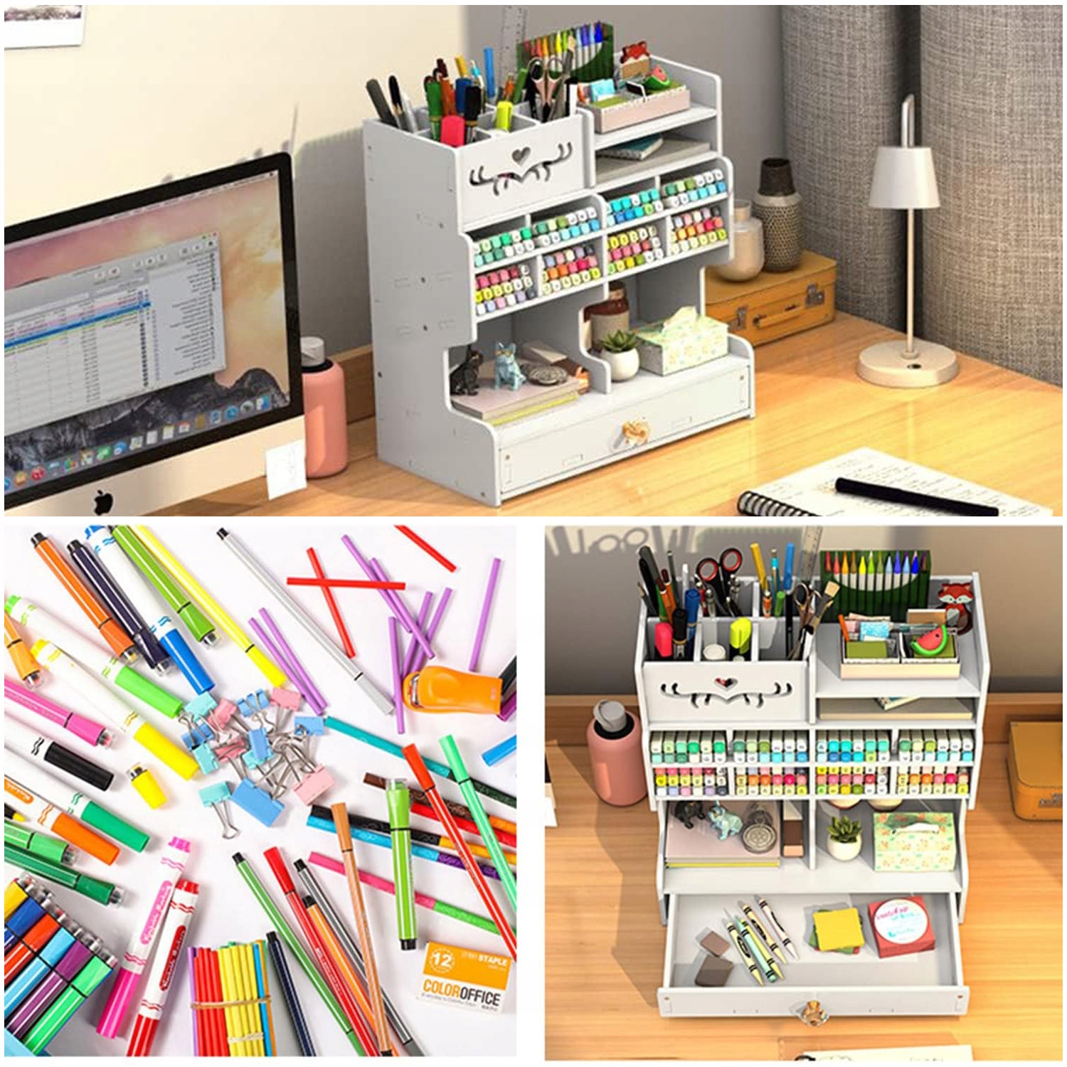 - ✅【Многофункциональный настольный органайзер с выдвижным ящиком】: Вмещает большое количество ручек, канцелярских принадлежностей, маркеров, линеек, ластиков, скрепок, ножниц, ножей для открывания писем, различных инструментов для художественных проектов, кисточек для макияжа или других мелких предметов личного пользования.