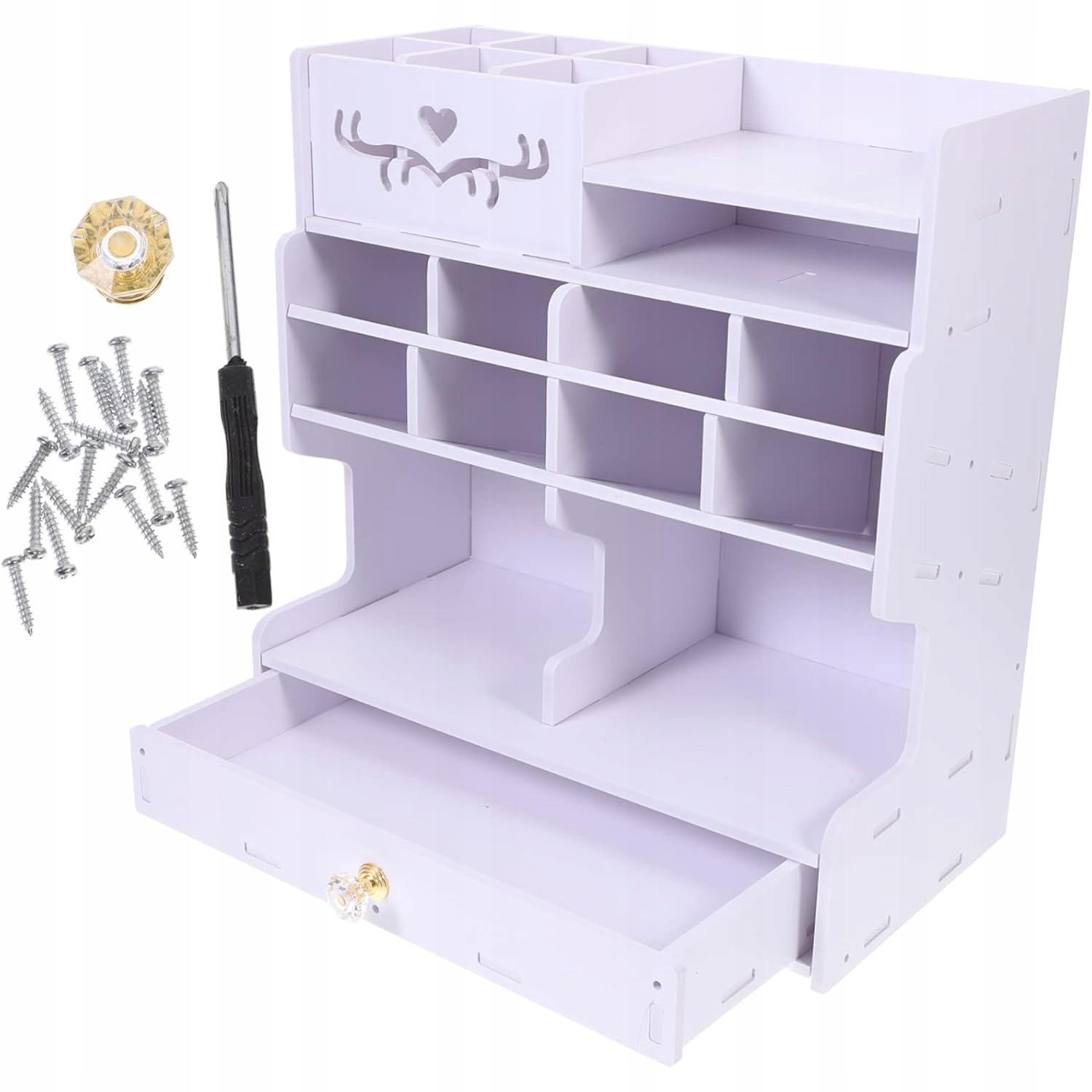 - ✅【Экономия места】: Он имеет несколько отделений и ящик, что обеспечивает достаточно места для хранения мелких предметов. Это сохранит ваш рабочий стол в чистоте и сэкономит место.