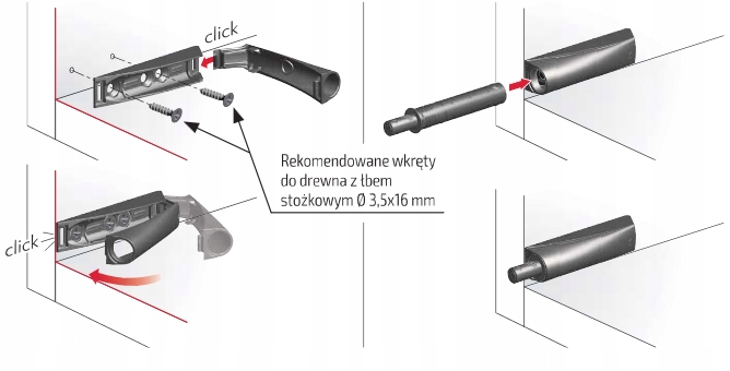 Предлагаемый товар предназначен для шкафов со стандартными пружинными петлями и всеми типами направляющих, кроме типа Push.