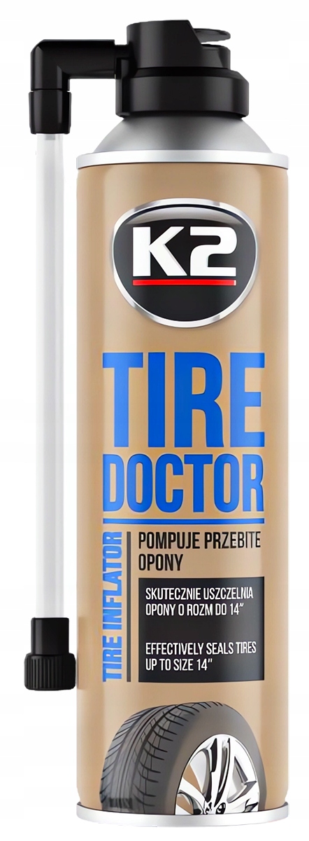 K2 Tire Doktor быстро и эффективно накачивает и герметизирует проколотые шины - временный ремонт без разборки и использования инструментов. Аэрозоль накачивает шину, а специальная латексная формула запечатывает дыру. Подготовка не влияет на балансировку колес.
