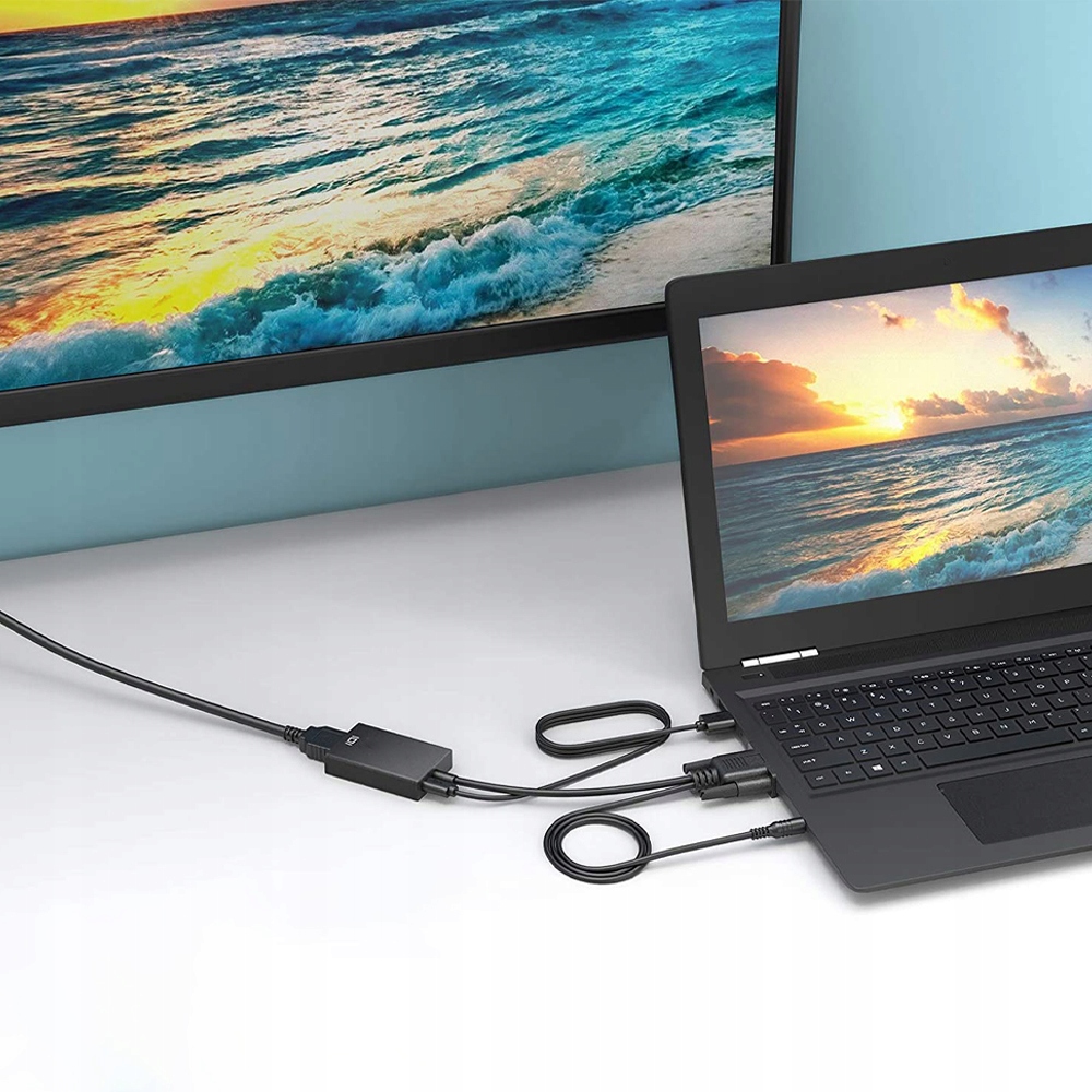 KABEL ADAPTER VGA do HDMI FULL HD D-SUB + PRZEWÓD AUDIO DSUB