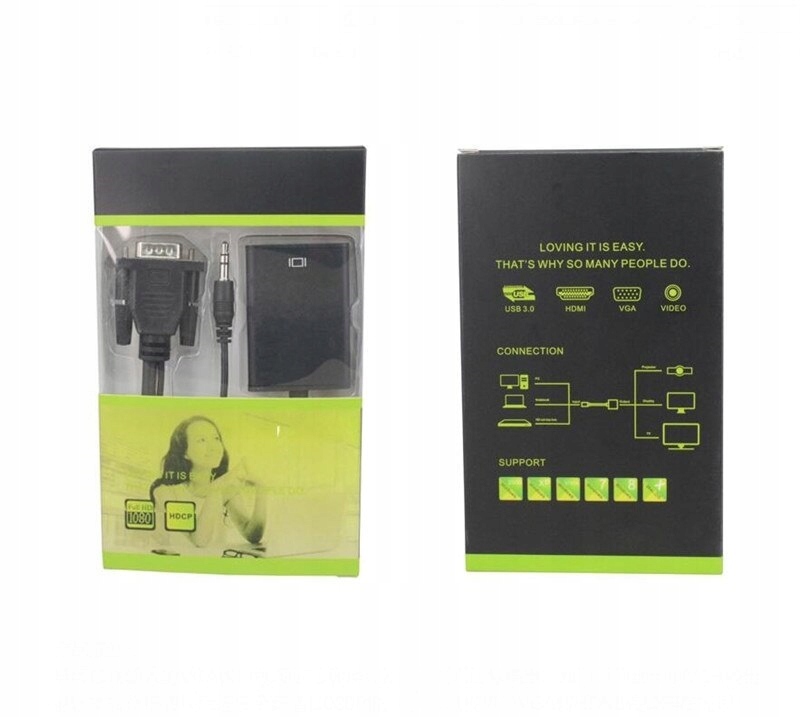 Конвертер — это продукт, который позволит вам добиться невероятного качества отображаемого изображения с VGA на HDMI. Также здесь имеется разъем jack 3,5 мм, отвечающий за звук через соединение HDMI. Адаптер позволит вам подключить устройство с входом VGA к другому устройству с входом HDMI. Конвертер подключает изображение и звук к выходу HDMI. Он питается от кабеля micro USB и является однонаправленным (работает только в одном направлении).
