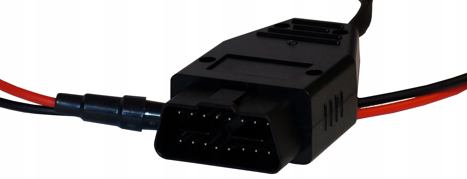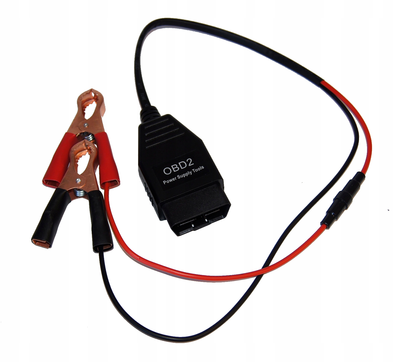 Разъем OBD2 с диодом, предохранитель в корпусе на плюсовом кабеле, два зажима (красный +, черный -)