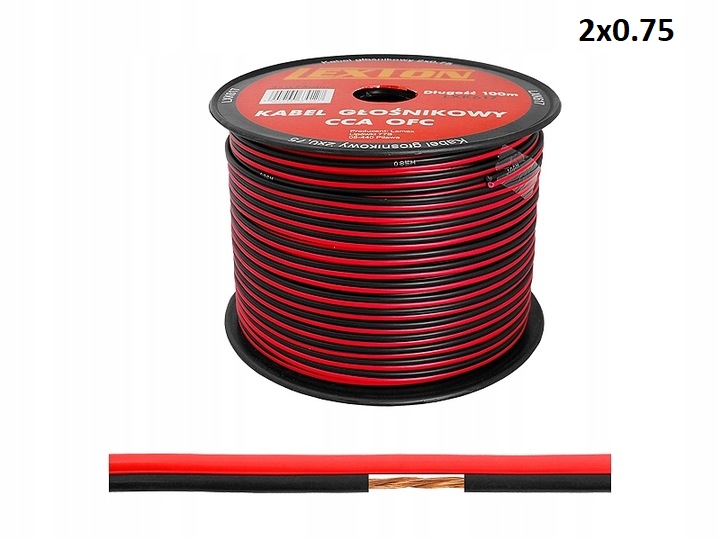 кабель динамика 2x0,75 CCA Черный и красный ролик Lexton 1m