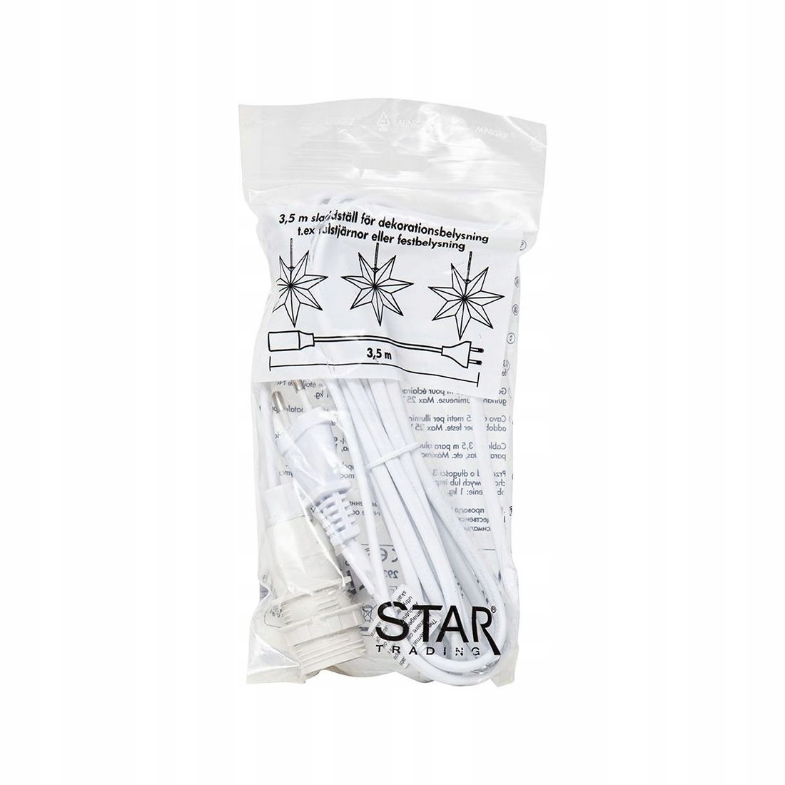 Шнур длиной 3,5 метра с розеткой Е14. Для использования внутри помещений.