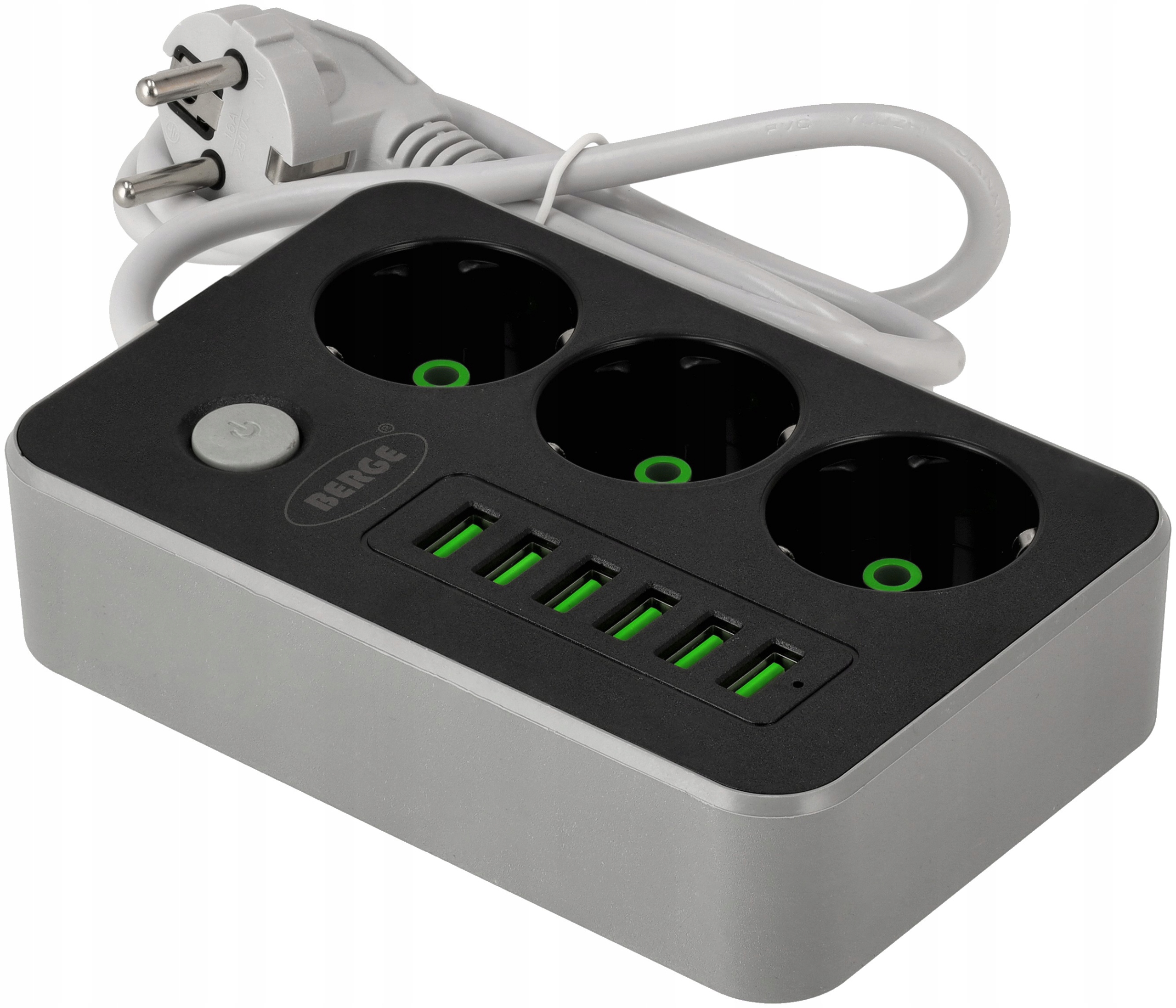 КАБЕЛЬ-ПОДОВЖУВАЧ ПІДДОВЖУВАЧ 3 РОЗЕТКИ + 6x USB 3м З ЗАЗЕМЛЕННЯМ