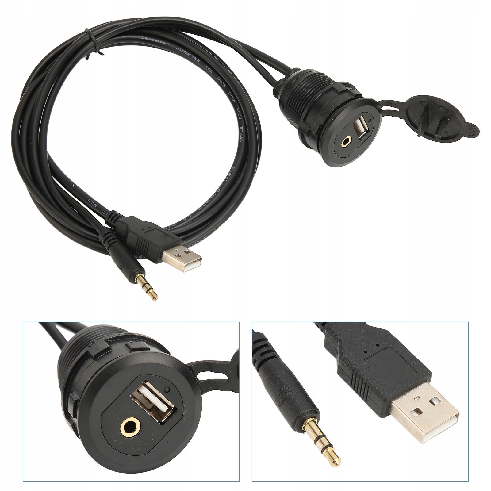 Особенность:1. ОБЛАСТЬ ПРИМЕНЕНИЯ: Удлинительный кабель AUX USB 2.0 3,5 мм подходит для приборных панелей автомобилей, лодок, мотоциклов, велосипедов и других устройств с широким спектром применения.