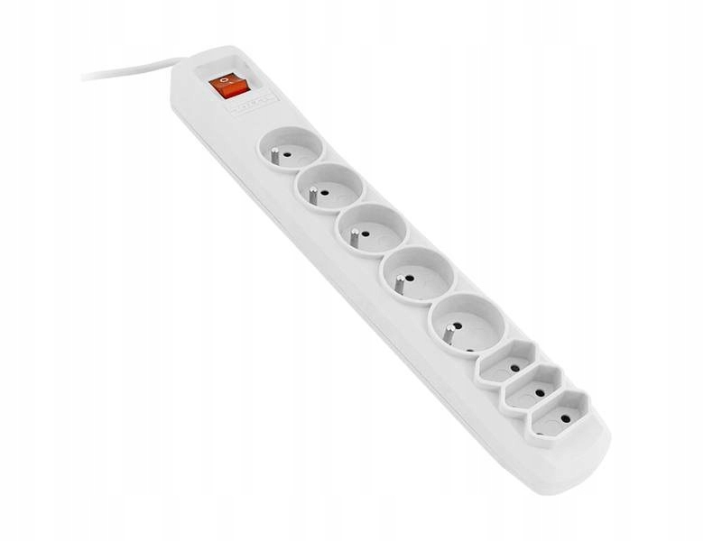 - 8 розеток: 5 розеток с заземлением (для максимальной безопасности) и 3 плоские розетки, идеальны для небольших устройств.