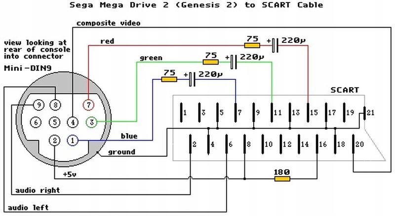 Это не обычный AV-кабель с евро/SCART-вилкой – это RGB-кабель, изготовленный по стандарту . Схема приложена к аукциону. Вы не можете подключить декодер/DVD и т. д. к телевизору с помощью кабеля. Кабель подходит только для консолей SEGA Genesis 2 и SEGA Mega Drive 2.