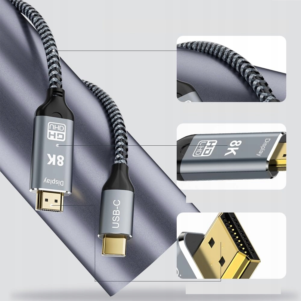 Кабель USB C — HDMI 2.1 Augustplay 8K 4K@240 Гц Thunderbolt 4/3 3M