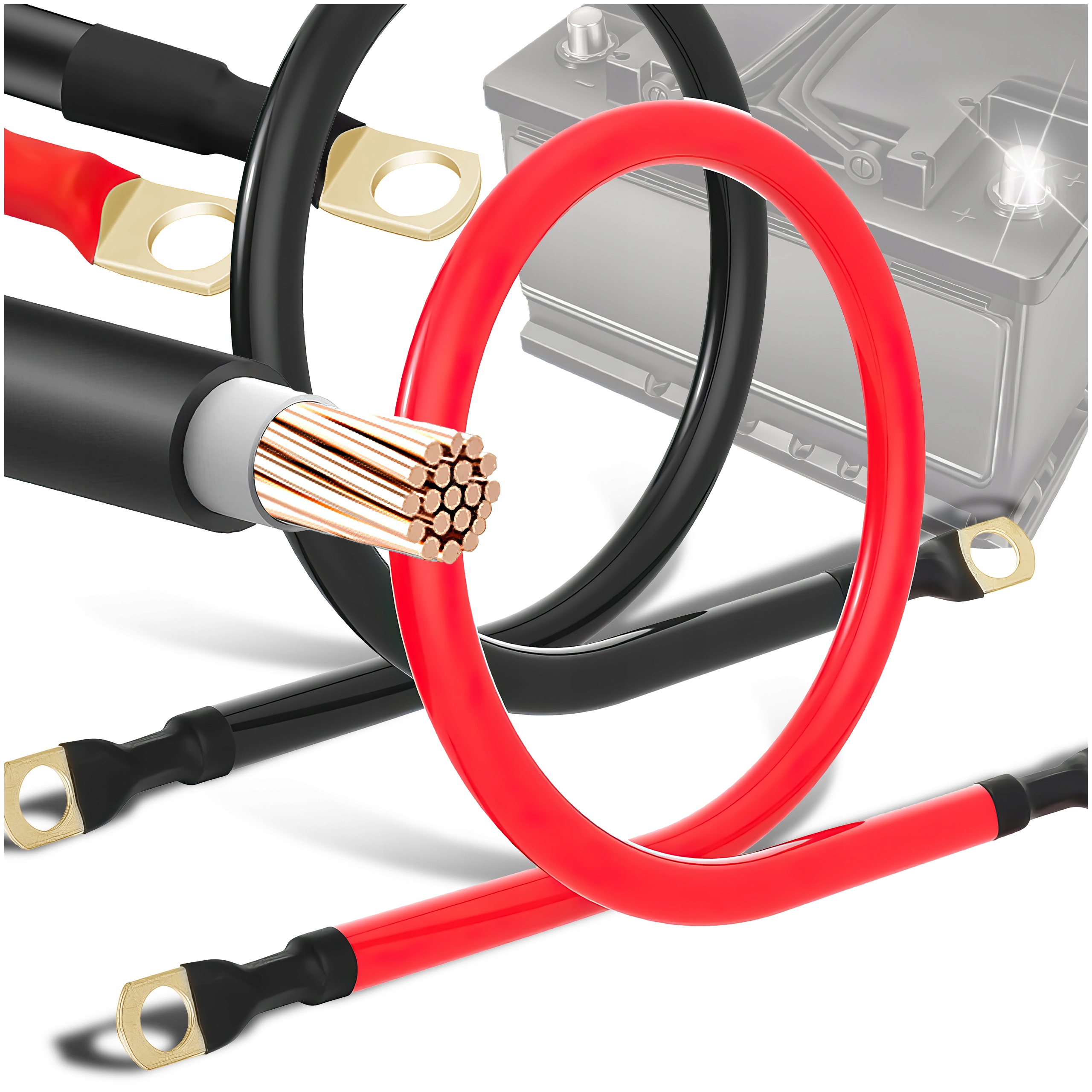 КАБЕЛІ КАБЕЛЬ ДЛЯ АКУМУЛЯТОРА СТРУМУ ПЛЮСОВИЙ МІНУСОВИЙ ПЛЮС МІНУС 105см М10