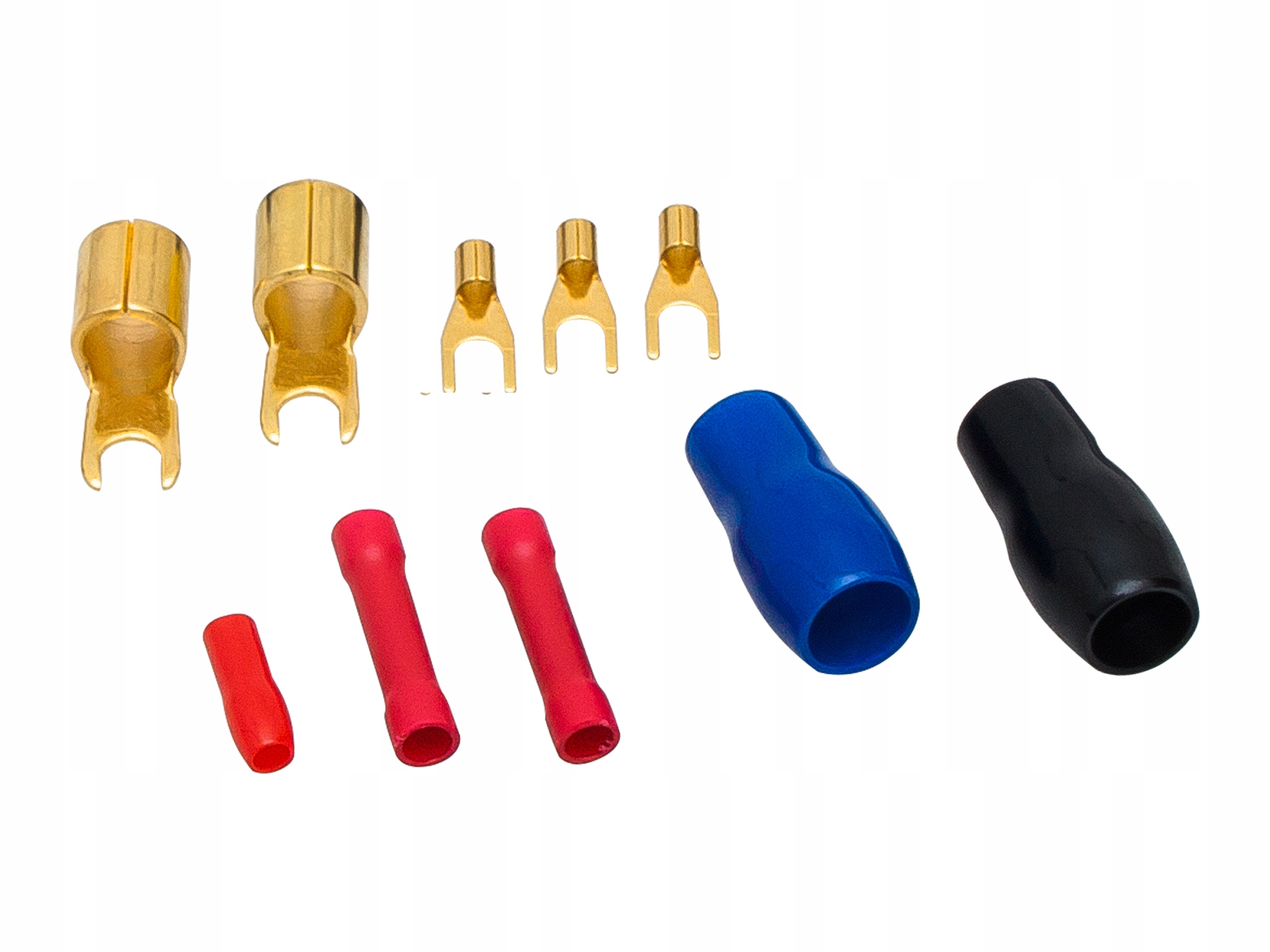 В наборе собраны все компоненты, необходимые для установки аудиоустановки практически в любой автомобиль. В комплект входят силовой кабель, массовый кабель, кабель RCA, кабель управления, гнездо предохранителя, предохранитель и разъемы, необходимые для