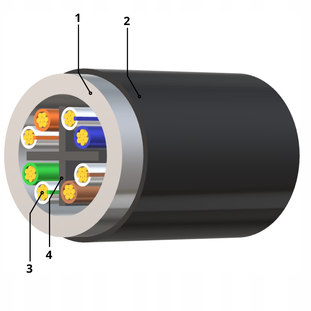 Внешняя скрученная пара, то есть сетевой кабель, предназначенный для использования за пределами зданий, используется для подключения компьютерной сети к большим расстояниям или в местах, подверженных трудным погодным условиям. Дополнительная изоляция, а иногда даже защита, чтобы защитить сигнал от электромагнитных помех