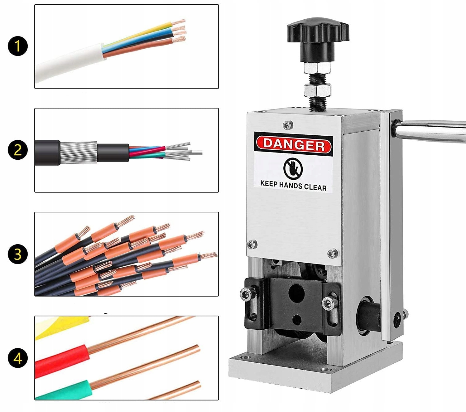 Простота эксплуатации и дополнительное подключение. Эта ручная машина для зачистки проводов оснащена рукояткой и проста в эксплуатации.