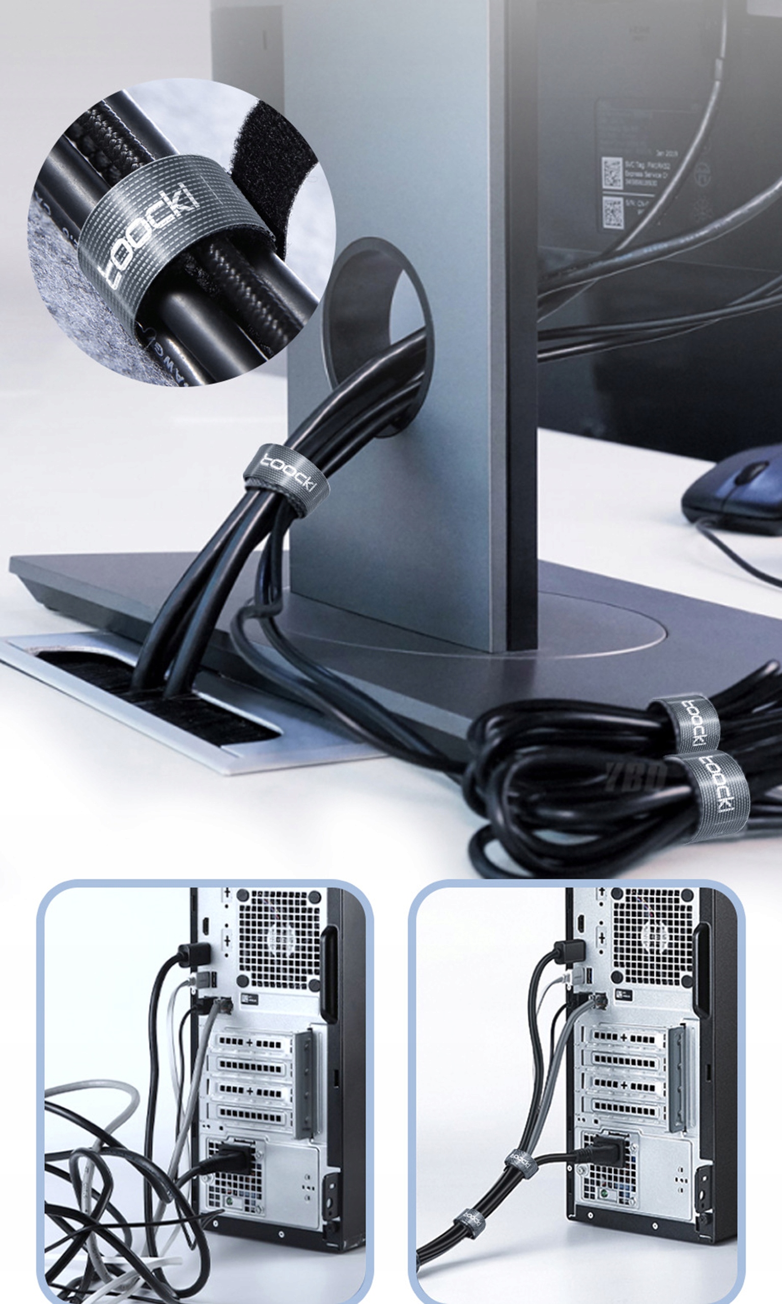 Практическая лента на липучке для связывания и организации кабелей. Это позволит вам эргономично расположить кабели на столе. Благодаря им вы сможете справиться с постоянно путающимися кабелями, мешающими комфортно пользоваться компьютером.