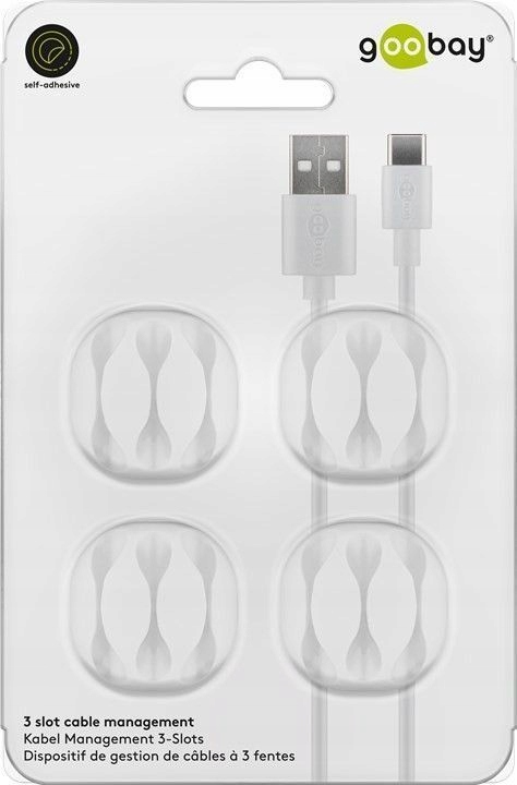 Кабельный органайзер 3М клей белый на 3 кабеля Goobay