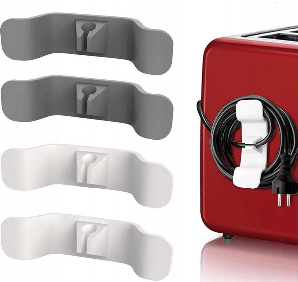 Практичный кабельный органайзер представляет собой держатель, который позволяет свернуть кабель и соединить его конец с зажимом посередине.