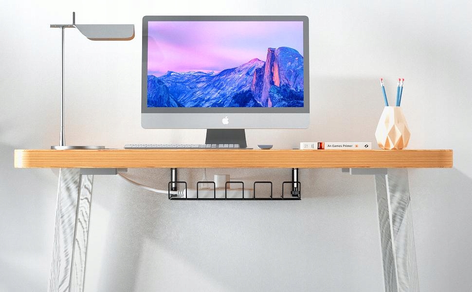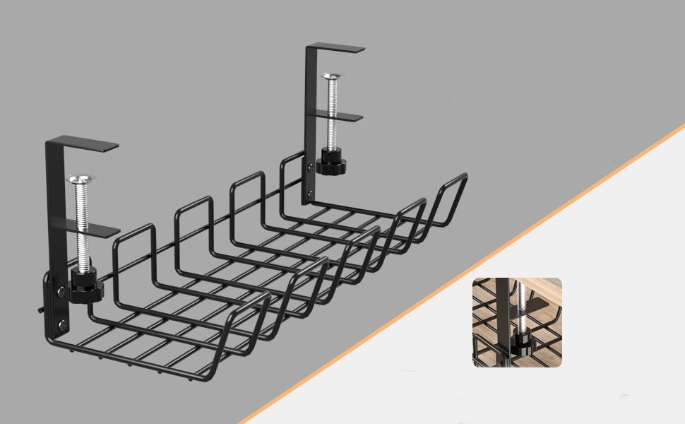 Лоток для прокладки кабелей предназначен для подвешивания непосредственно на каркасе стола. Легко устанавливается, не нужно сверлить отверстие под столом. Вместо того, чтобы сверлить отверстие под столом, просто вручную затяните черные зажимы вверх. Благодаря этому вы можете легко менять его положение по своему желанию.