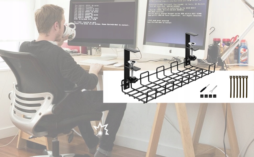 КАБЕЛЬНИЙ ОРГАНІЗАТОР ПІД СТОЛОМ ДЛЯ КАБЕЛІВ СТОЛ КОШИК ПОЛИЦЯ
