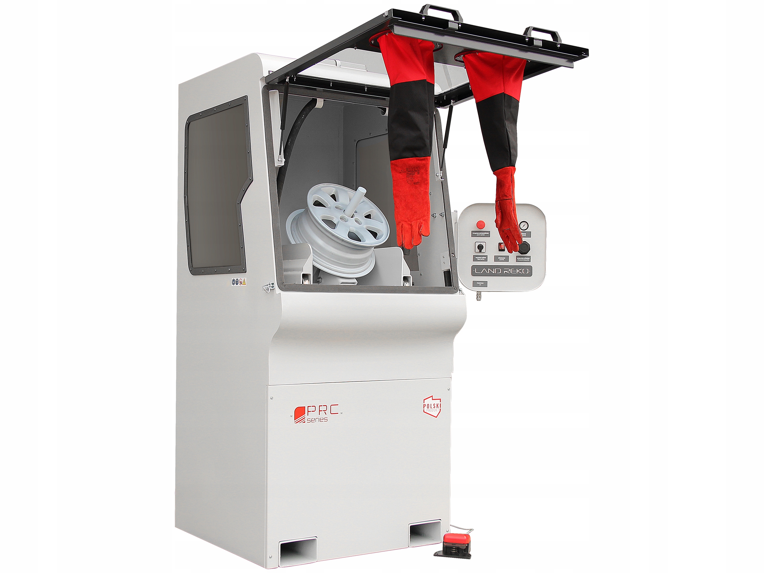 Очистители автомобильных дисков серии Land Reko® PRC представляют собой специализированные абразивоструйные машины, предназначенные для очистки автомобильных дисков. Профилированный поворотный рабочий стол, оснащенный 3-х ступенчатой регулировкой угла положения заготовки, положительно влияет на процесс обработки. Вращение рабочего стола вокруг своей оси обеспечивает воздействие абразивной струи на 360 градусов и получение повторяемой поверхности с однородной структурой и заданными параметрами. Дробеструйная машина ПКР-25-13 позволяет обрабатывать диски размером до 25 дюймов и массой до 110 кг при давлении до 13 бар. Устройство оснащено высококачественным абразивным дисковым клапаном Clemco, характеризующимся механической прочностью и стойкостью к истиранию выше среднего по сравнению со стандартными клапанами, установленными в дробеструйных машинах конкурирующих компаний.