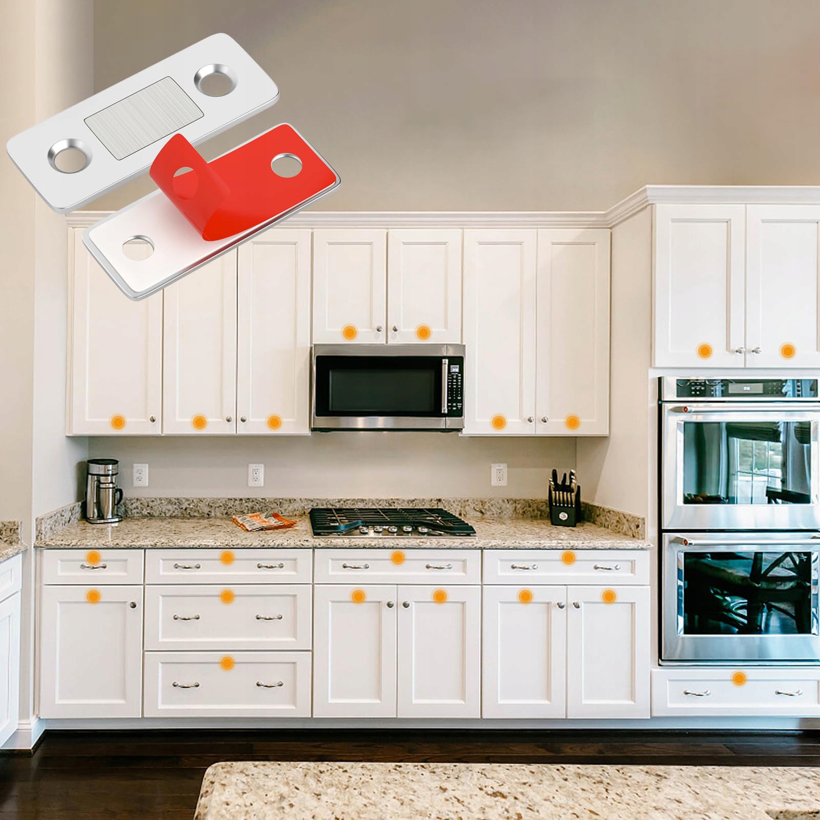 Мощная магнитная сила: Эта магнитная дверная защелка содержит один магнит, который удерживает ее постоянно. открытие дверец кухонного шкафа или ящика в закрытом положении, подходит для дверей, у которых защелка или петля бесполезны.