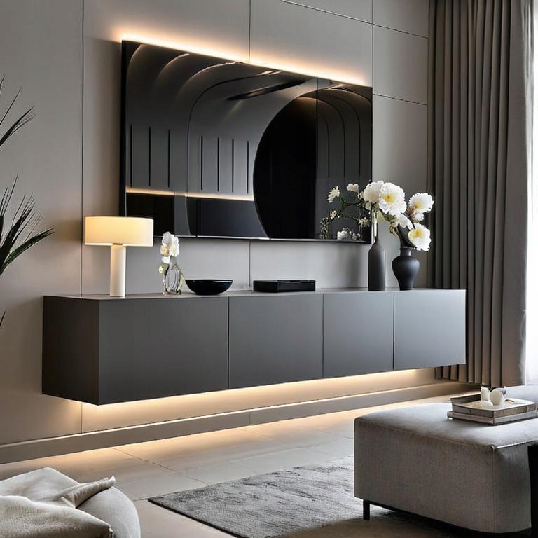 RTV Cabinet Paris Grey Mat 200 см висящей салон мебель светодиодный освещение