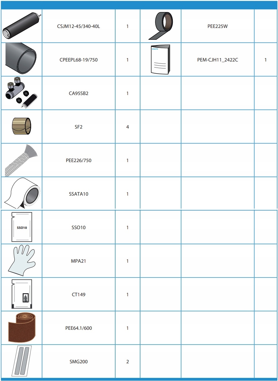 Набор включает в себя набор компонентов для одной фазы, то есть герметизирующие массы, ленты, носовые платки, изоляционные трубы с холодным, с интегрированными элементами управления полевыми веществами и нагревающей крышкой трубы. возвращаться.