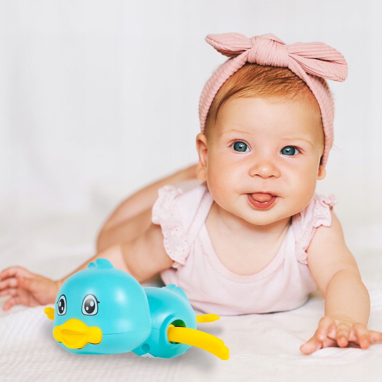 Очаровательный утенок отлично купается в ванне. Смотав ее и бросив в воду, она начинает плавать и двигаться как настоящий пловец!