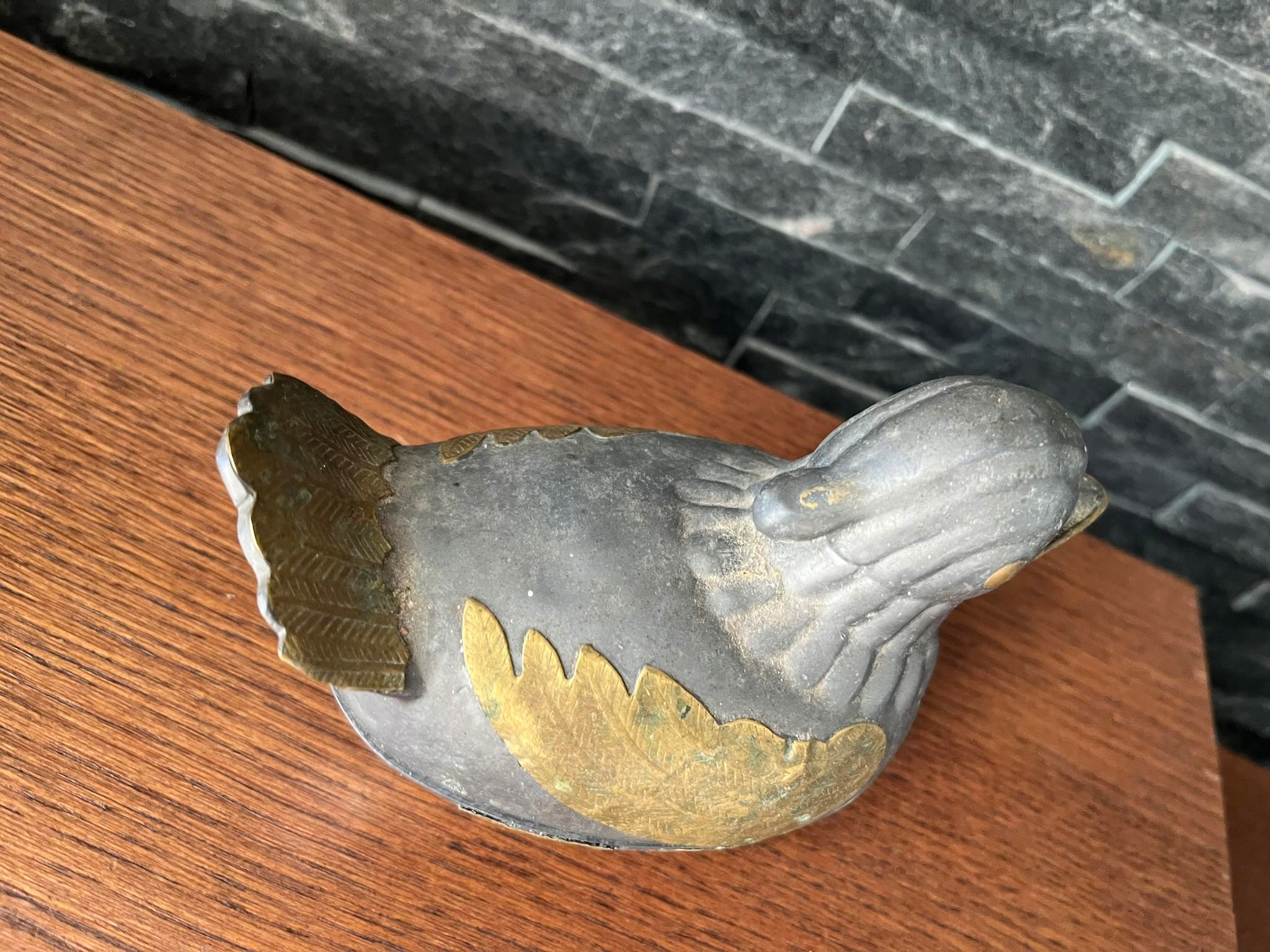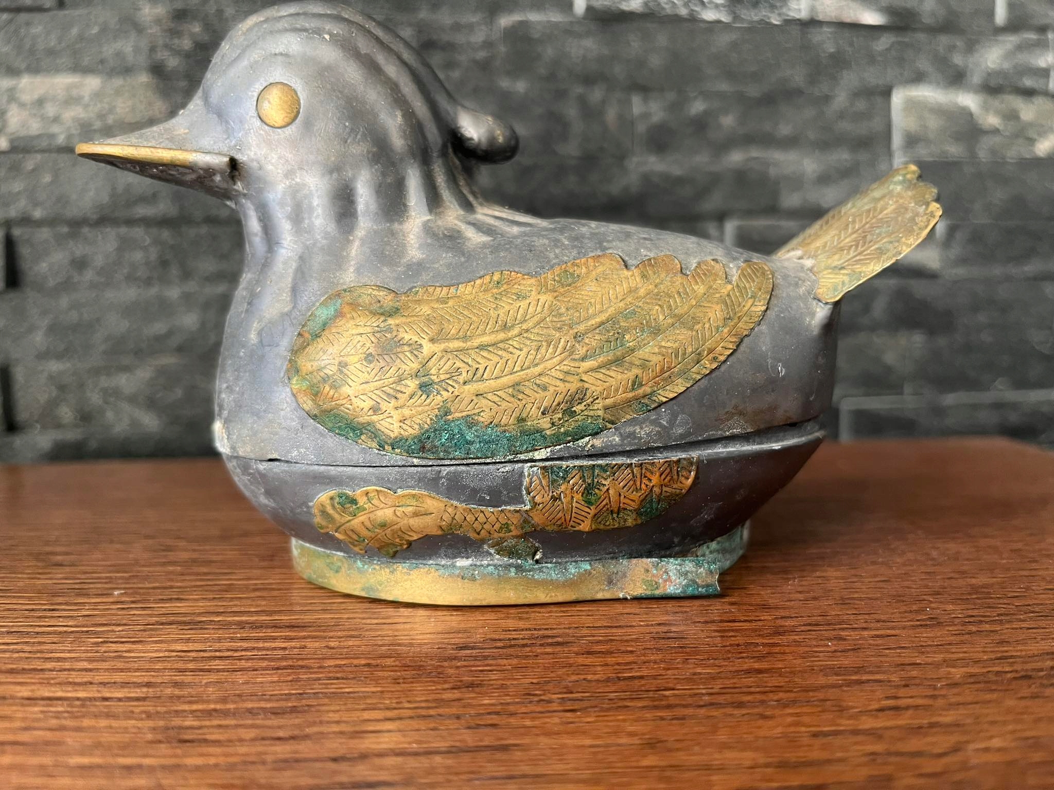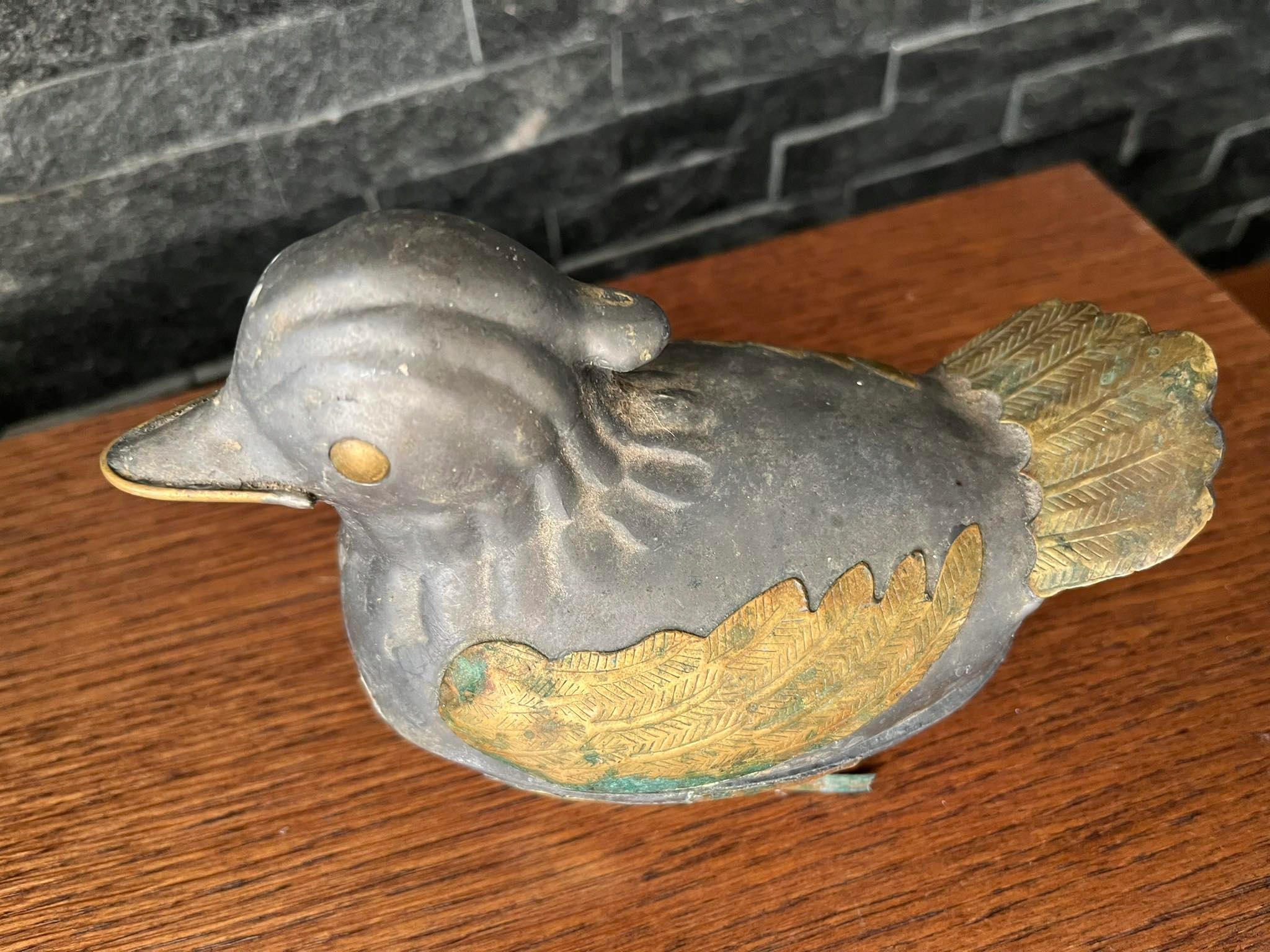 Kaczka figurka metal mosiądz szkatułka puzderko