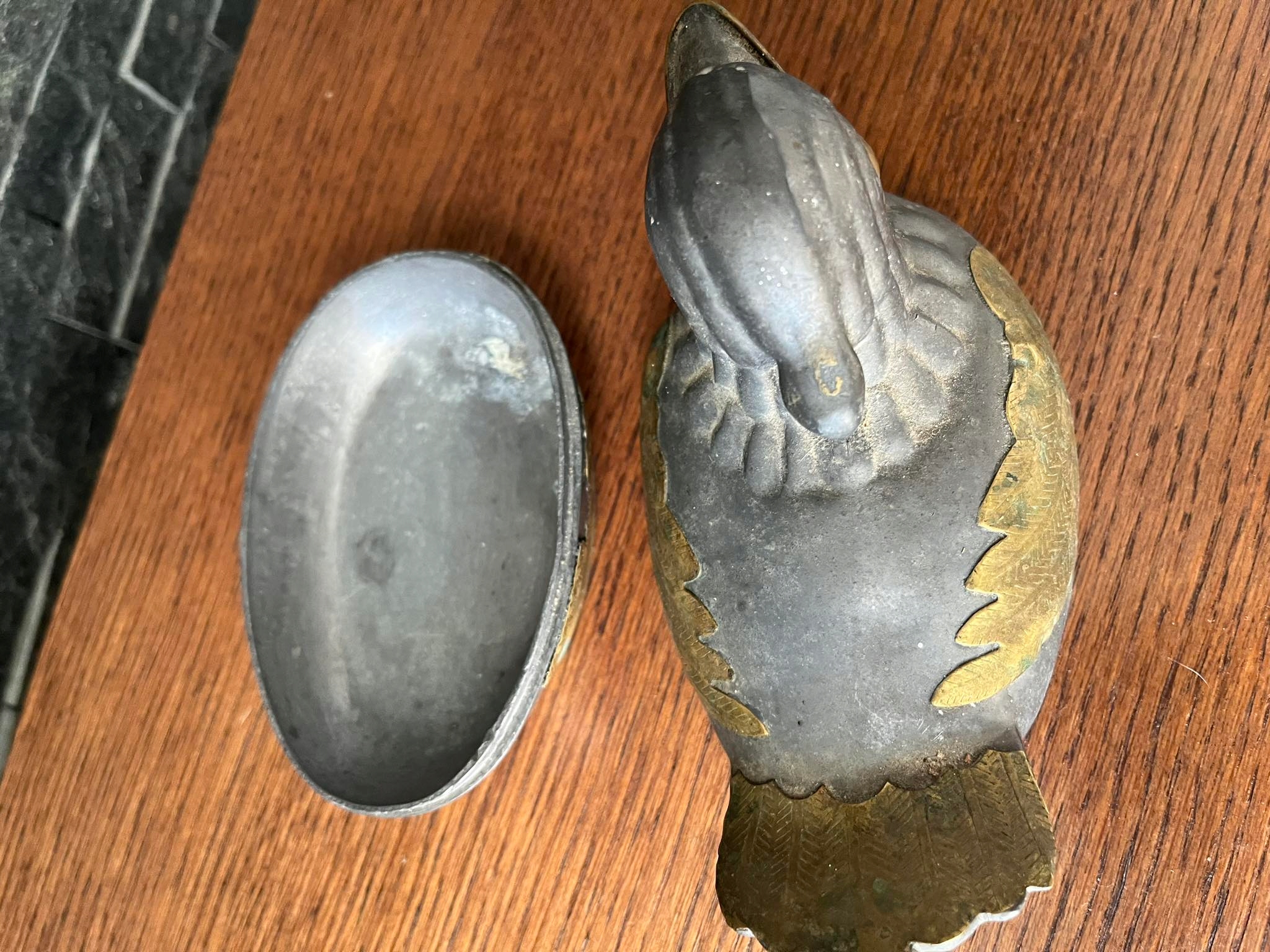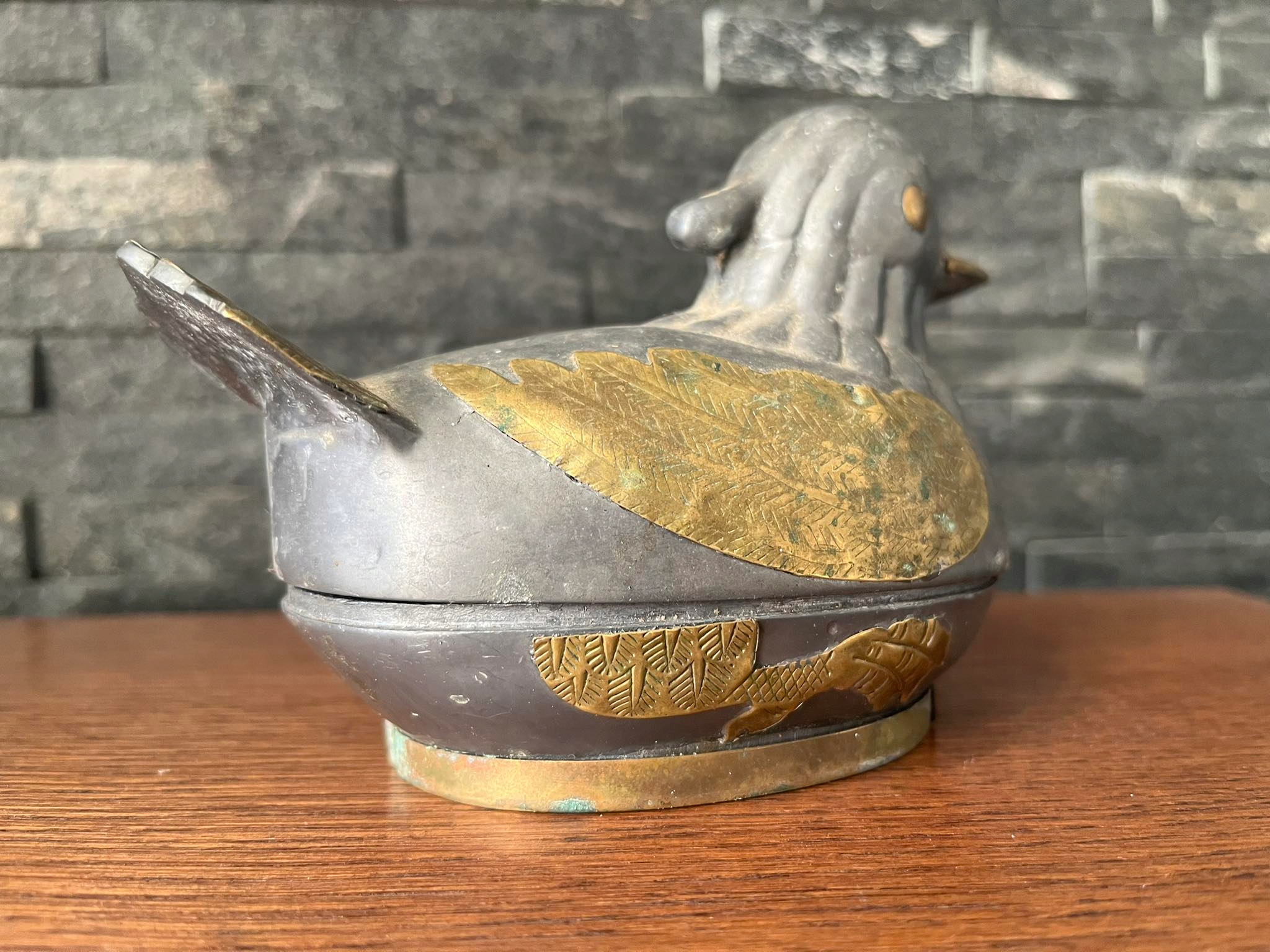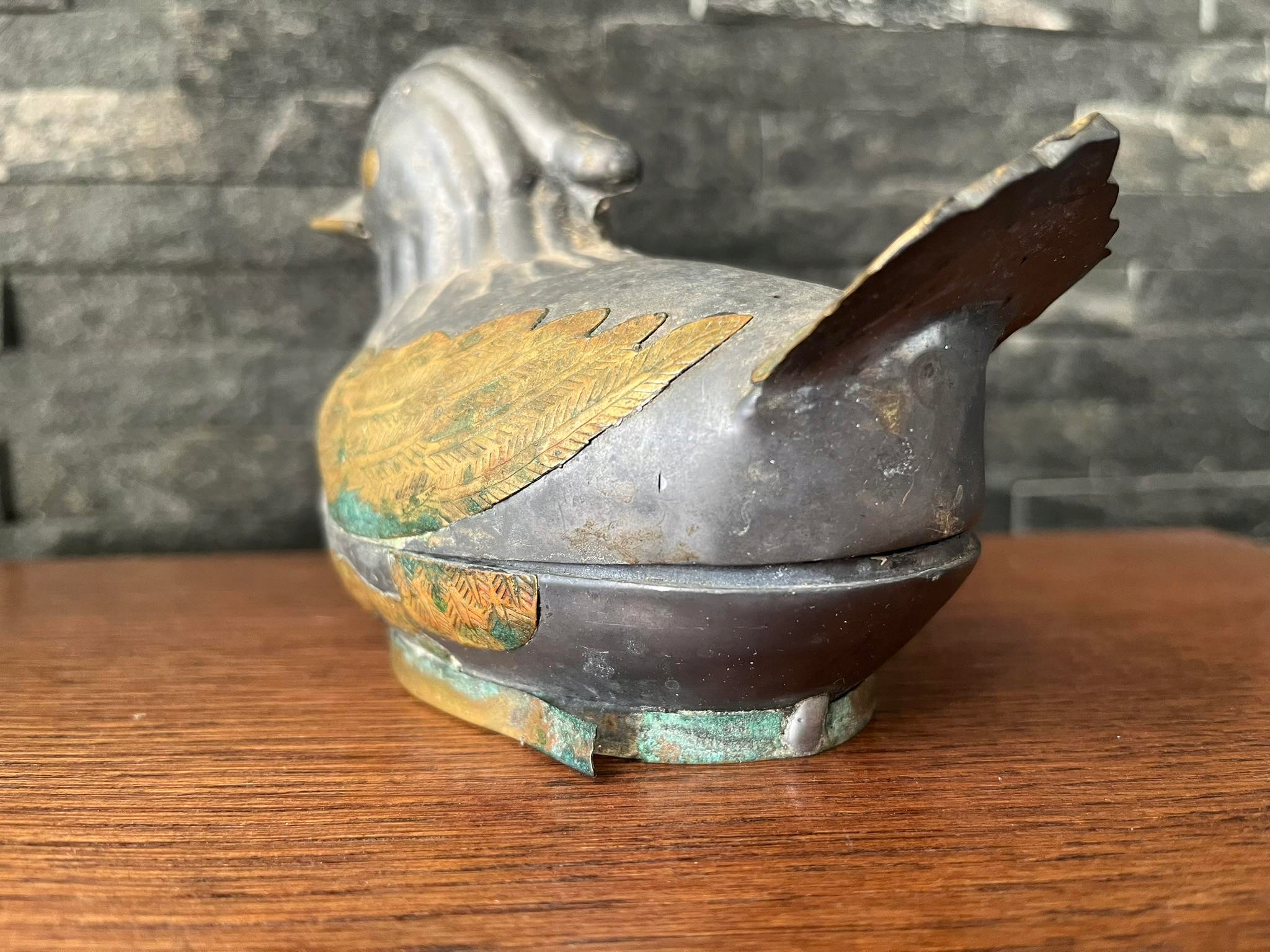 Kaczka figurka metal mosiądz szkatułka puzderko