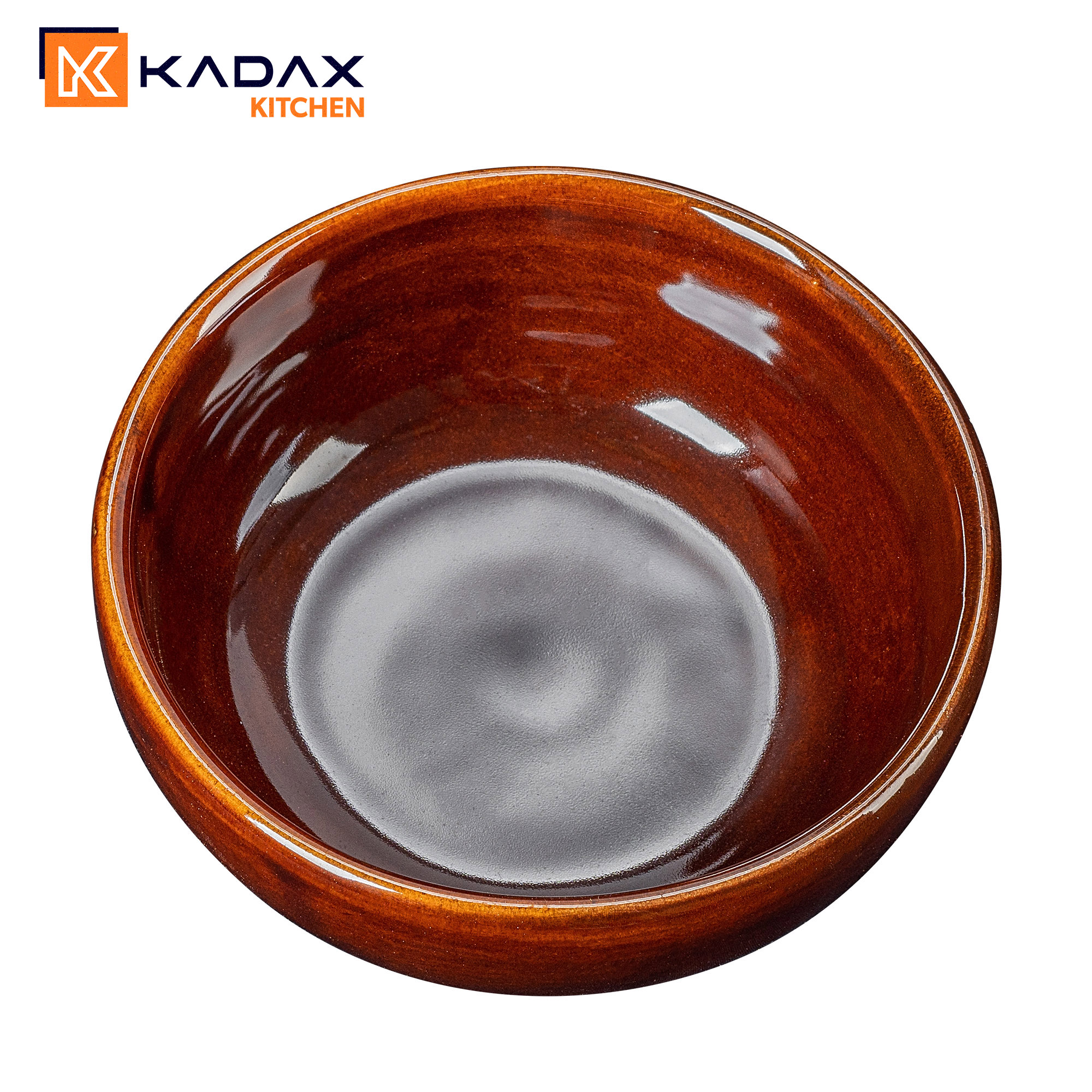 Недекорированная поверхность чаши покрыта со слоем глазури, которая придает интенсивное сияние, которое дополнительно подчеркивается вечным коричневым цветом. Минималистичный дизайн сосуда прекрасно дополнит вашу посуду практически в любом стиле. Стоит иметь его в своем оборудовании!