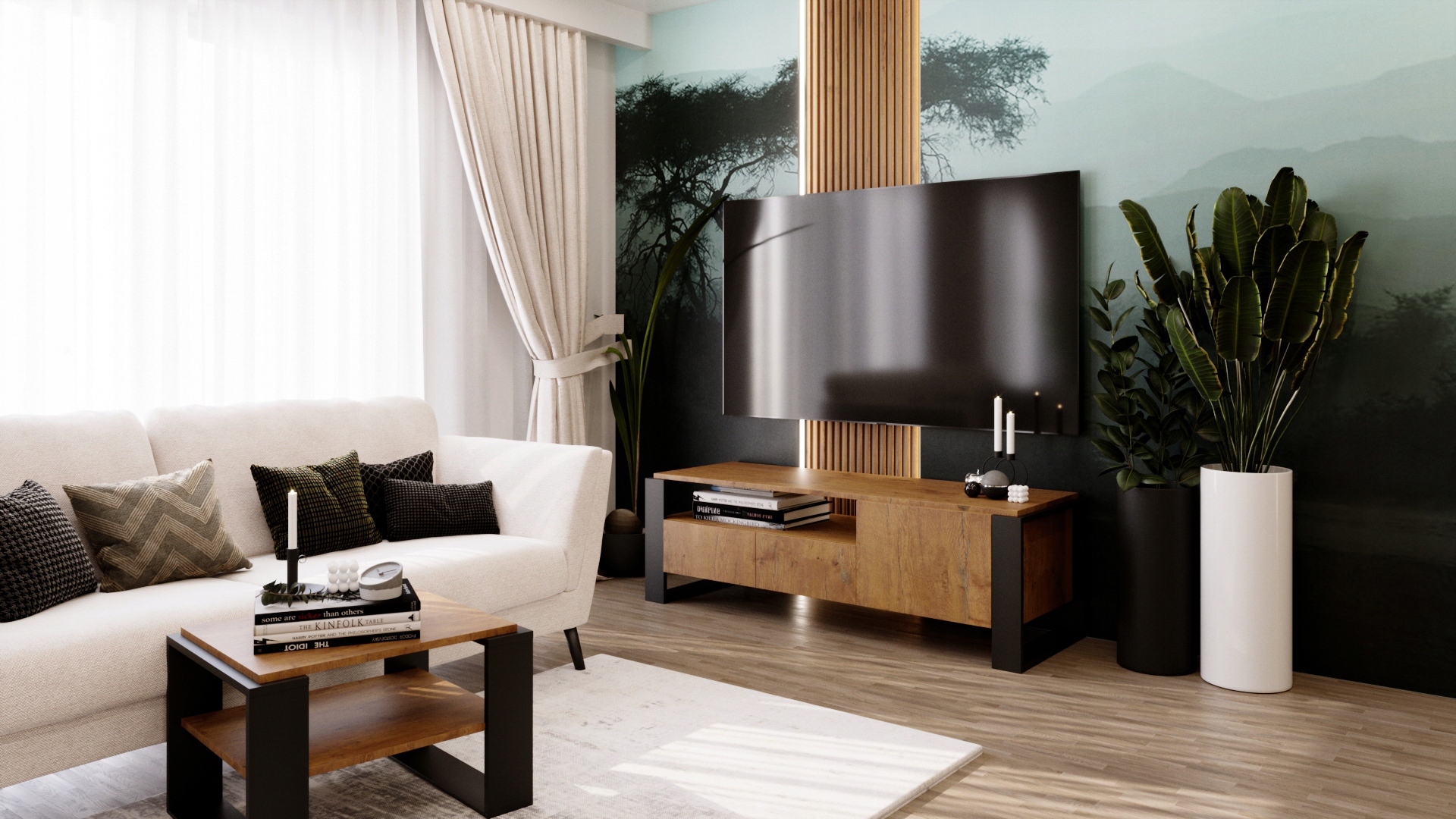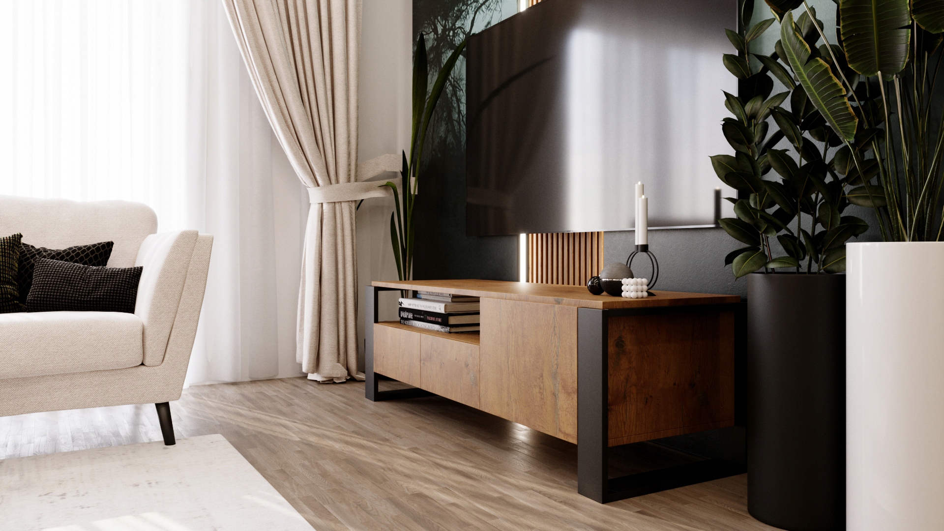 Практическая тумба под ТВ – это предмет мебели, без которого не обойдется ни одна гостиная. Простой и классический телевизор идеально подойдет для современных обстановок и минималистичных дизайнов вашего интерьера. Отличается высочайшим качеством изготовления и уникальным внешним видом благодаря использованию мебельного щита премиум-класса марки Egger/Pfleiderer
