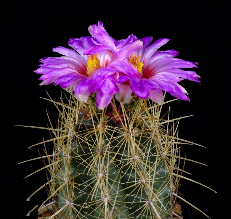 Thelocactus bicolor имеет очень широкий ареал в северной части пустыни Чиуауа в США (Техас) и Мексике (Чиуауа, Коауила, Дуранго, Нуэво-Леон, Сан-Луис). Потоси, Тамаулипас, Сакатекас). Произрастает на высоте 800 – 2200 метров над уровнем моря. Встречается на плоских гравийных, известняковых или песчаниковых почвах на склонах холмов или на склонах холмов, а также на аллювиальных конусах в пустыне или на пастбищах. Предлагаемый кактус родом из определенного места, находящегося в 1 км. Огюстен Кастро Дур. . Это шаровидные, обычно одиночные кактусы диаметром до 10 см. Стебель яйцевидной формы, высотой 8 – 20 см, шириной 5 – 12 см. Ребер: 8, отчетливые. Округлый туберкулез. Ареолы: с железами. Центральные булавки: 3–4, длиной 15–75 мм, от охристого до красноватого цвета, прямые, игольчатые или слегка изогнутые внутрь. Радиальные булавки: 8–18, длиной 10–30 мм, от охристого до красноватого цвета, прямые, игольчатые. Цветки: шириной 5,5 – 11 см, фиолетовые с красной гирляндой. Этот таксон имеет множество синонимов (как и многие другие кактусы) с несколькими спорными разновидностями и подвидами и включает большое количество различных форм, однако каждая форма связана с разными популяциями растений со средними характеристиками.