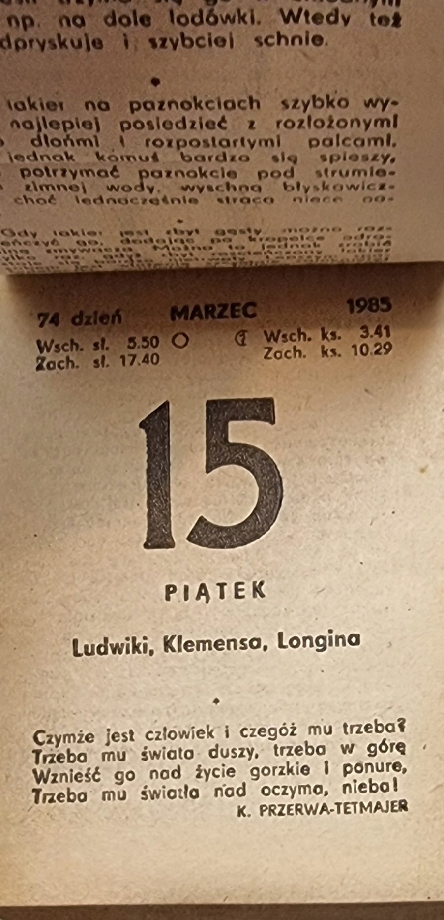 Календар 1985 рік, лущилка лисиця, комплект