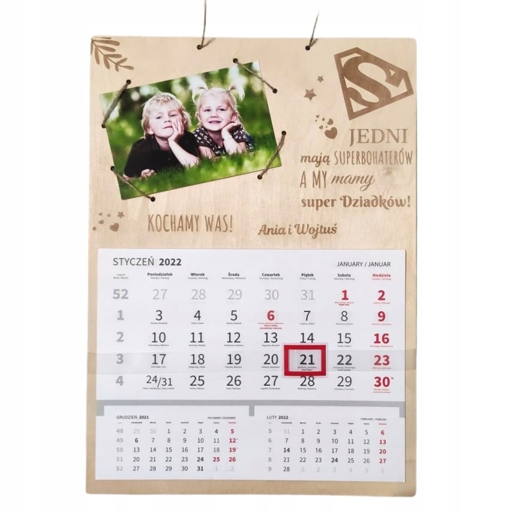 Деревянный календарь с фотографией – отличная идея подарка бабушкам и дедушкам в праздник. Он изготовлен из фанеры и бумаги высочайшего качества. Персонализация делает его уникальным календарем, который обязательно заставит вас двигаться и улыбаться.