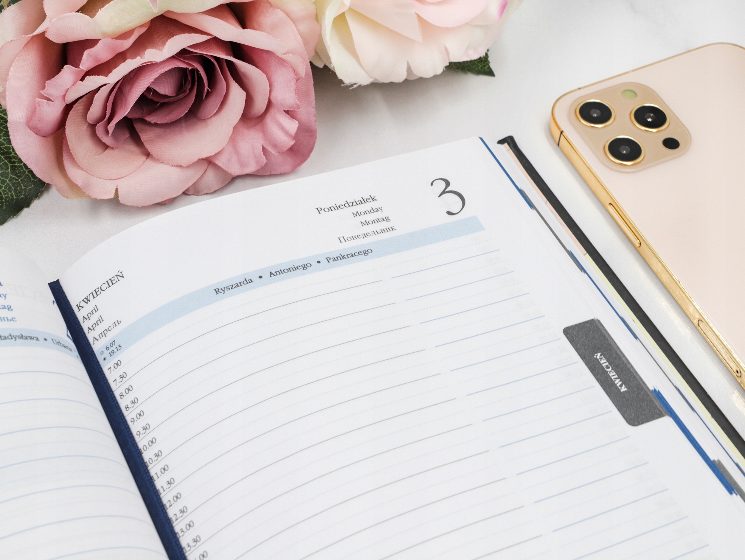 ✅ Календарь: 5 языков (PL, EN, DE, RUS, FR), именины и праздники, фазы луны, восходы и закаты, план на весь год внизу календарь