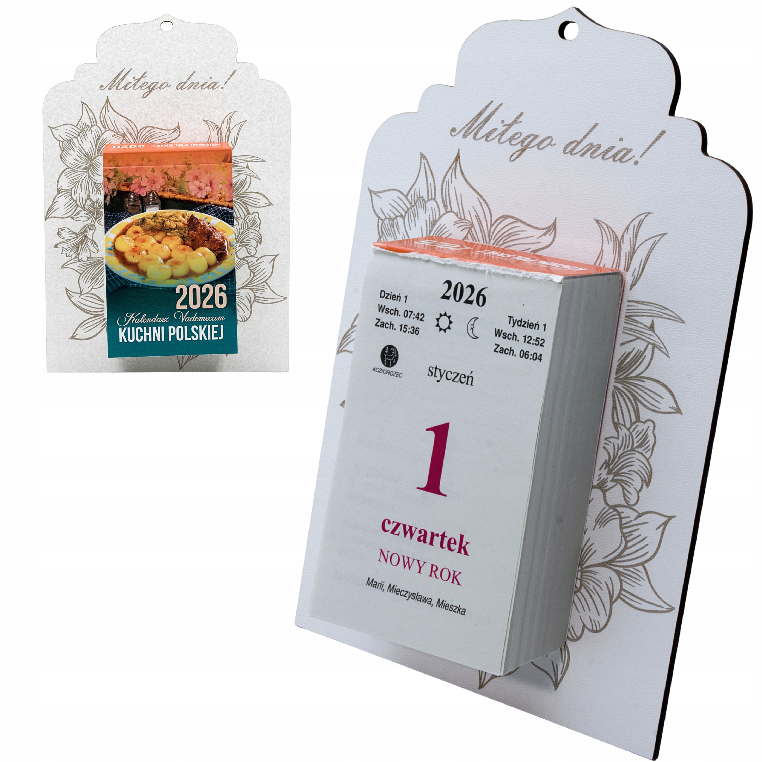 Отрывной календарь 2026 "Vademecum польской кухни" с элегантной подставкой с гравировкой для подвешивания на стену