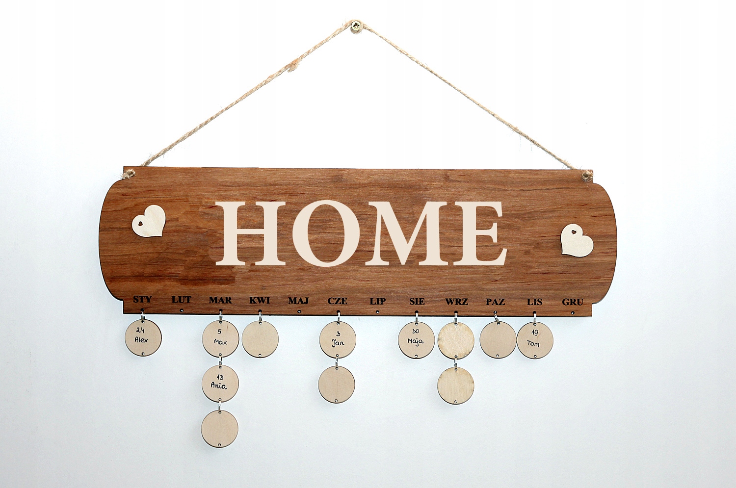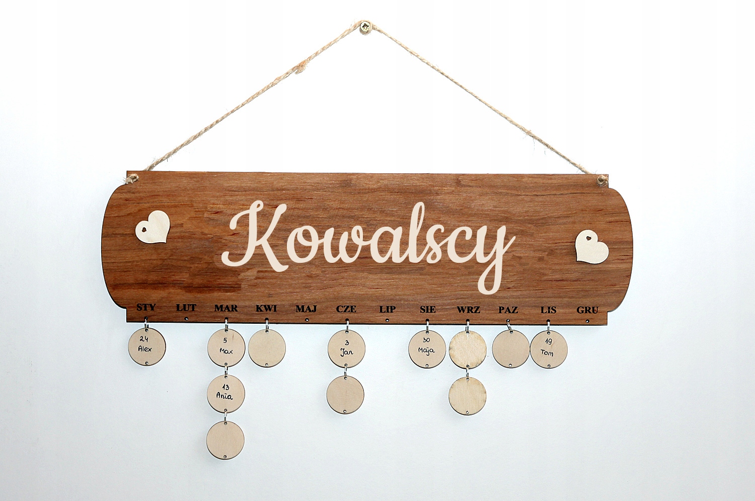 Календарь изготовлен из фанеры, покрытой специальным экологическим маслом, с деревянной надписью и выгравированными месяцами. - МОЖНО ДОБАВИТЬ СВОЮ надпись (например, день рождения/важные даты/Ковальского)