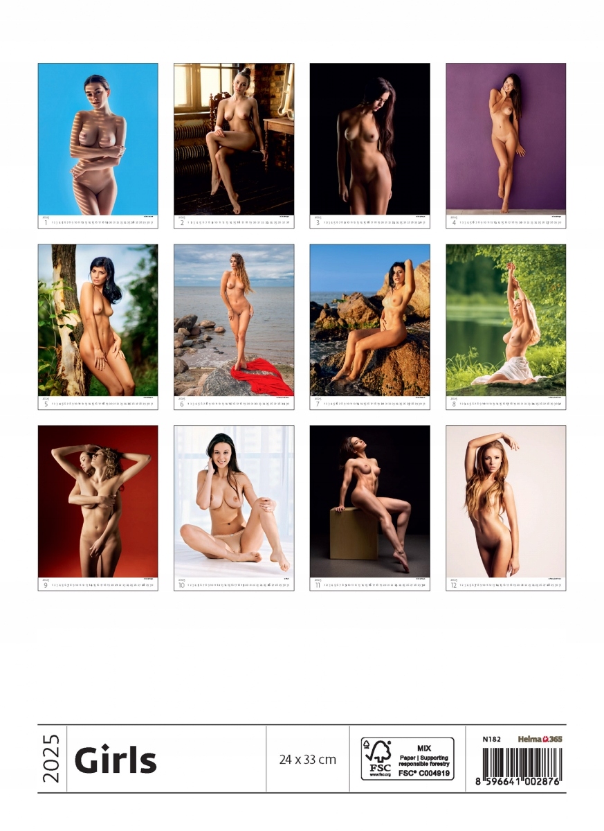 GIRLS 2025 — это бестселлер из 12 фотографий с моделями в студии и на природе. Календарь издан в удобном формате 24х33 см. Отпечатано на плотной мелованной бумаге с картонной подложкой.