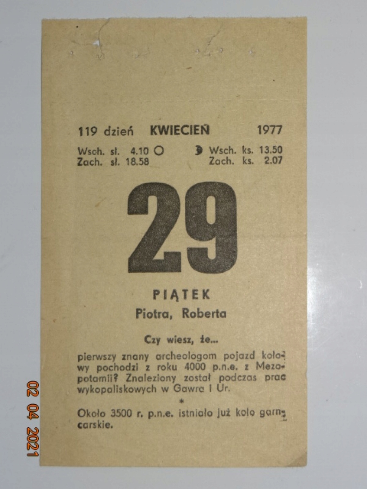 КАЛЕНДАРНА КАРТКА 29 КВІТНЯ 1977 29 04 IV