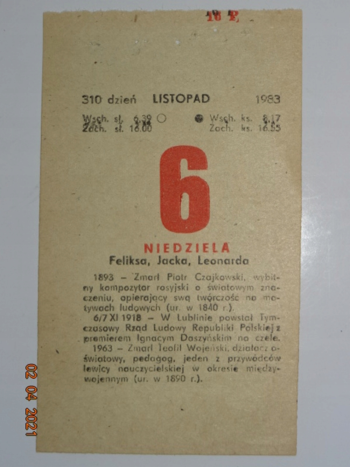 КАЛЕНДАРНА КАРТКА 6 ЛИСТОПАДА 1983 6.11. XI