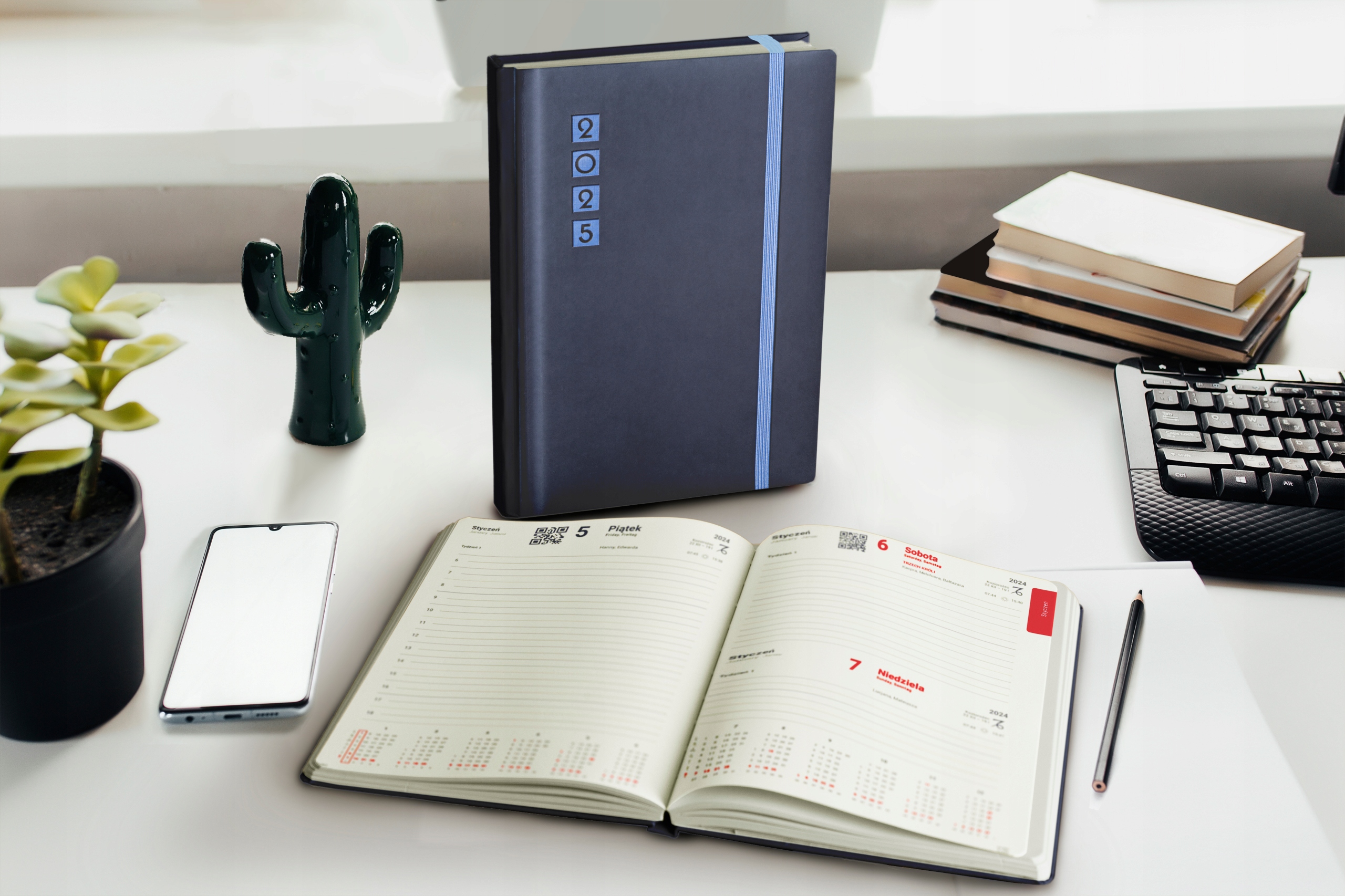 KALENDARZ KSIĄŻKOWY A5 DZIENNY 2025 PRAKTYCZNY VIP PLANER GUMKA