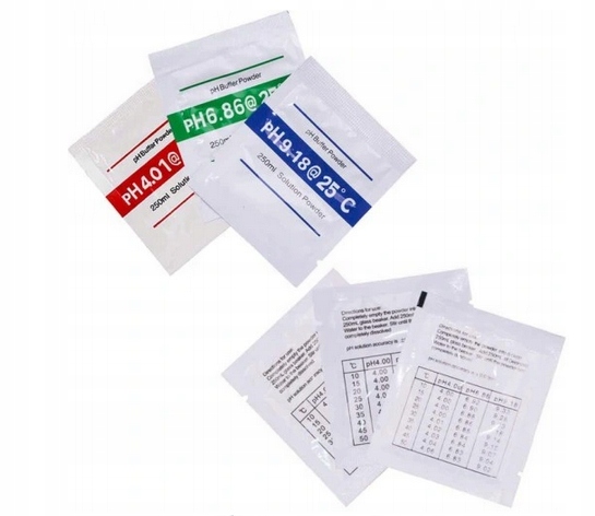 Содержимое пакетика следует залить 250 мл деминерализованной воды (температурой 25°С), перемешать пластиковой ложкой и подождать до полного растворения порошка, затем откалибровать прибор согласно инструкции, используя раствор с определенным pH.